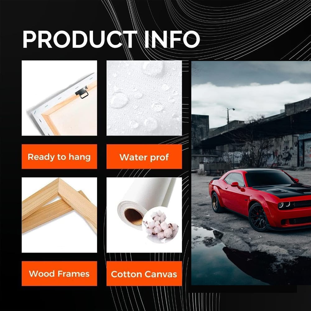 This wall art is a blast for car fans! The poster features a red Dodge Charger that looks like it just burst out of the ghetto and onto the wall. The painting is loaded to the max – it’s both powerful and stylish. Perfect for those who breathe gasoline and live life at full speed. See more from the collection: Dodge Art