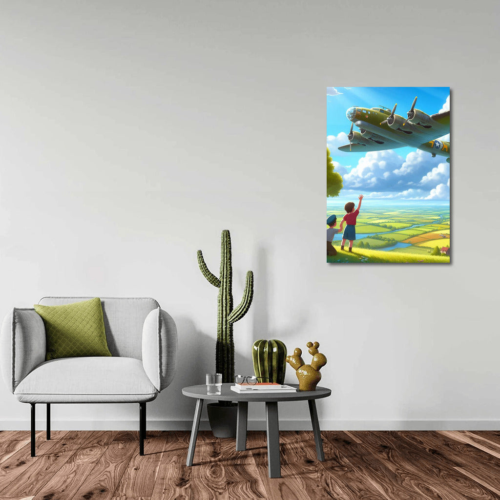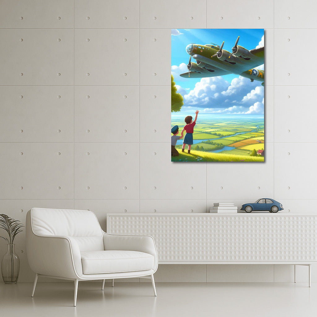 Bomber in Flight Under the Rainbow: Symbol of Dream and Freedom Wall Art