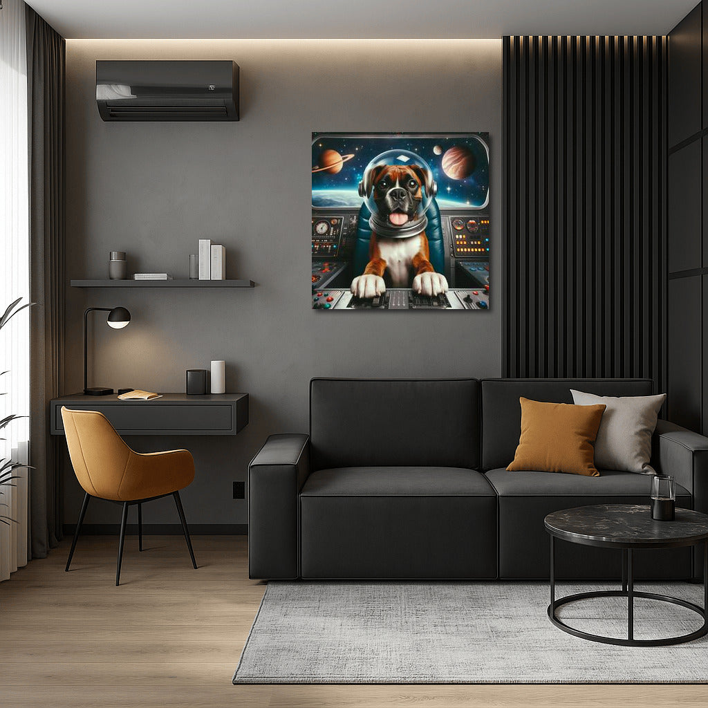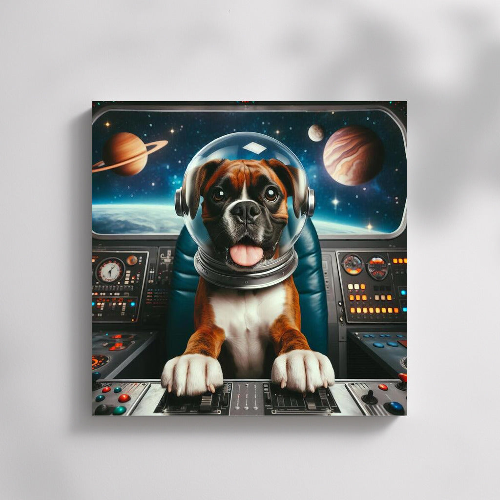 Boxer's Space Journey: Dog in a Spaceship Wall Art