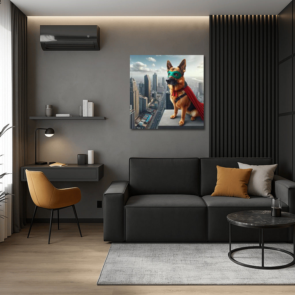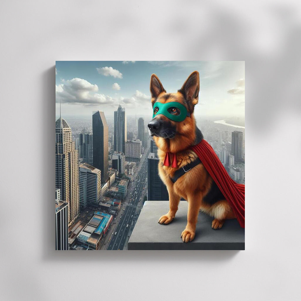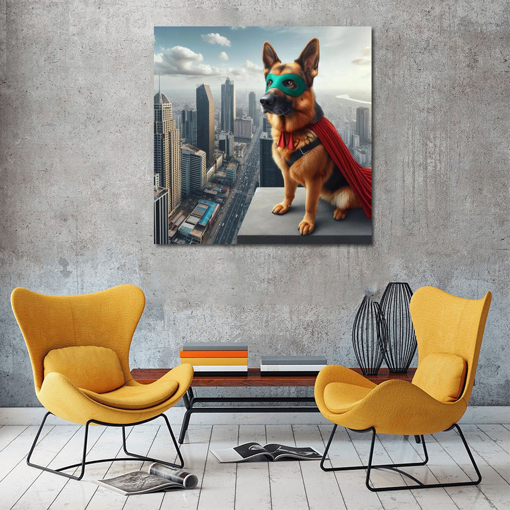 Brave Dog Superhero in Mask and Cape: City Defender Wall Art