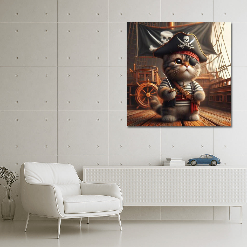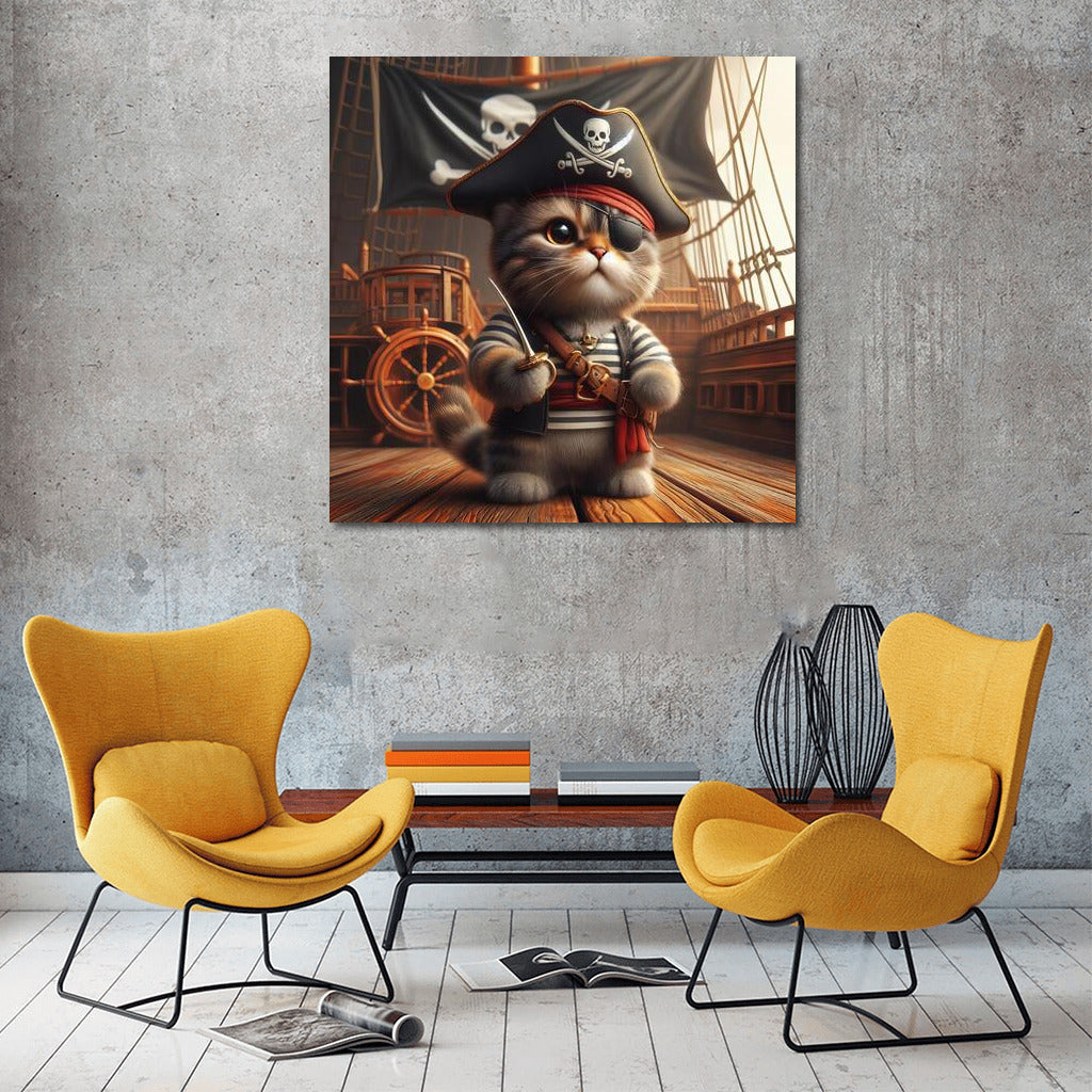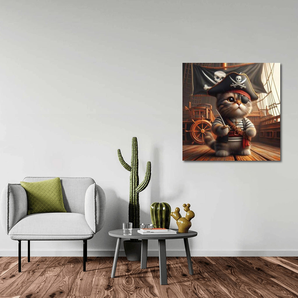 Set sail for the seas of adventure with this poster: a brave pirate cat guarding his ship! Wall art for the brave. See more from the collection: Animals Art