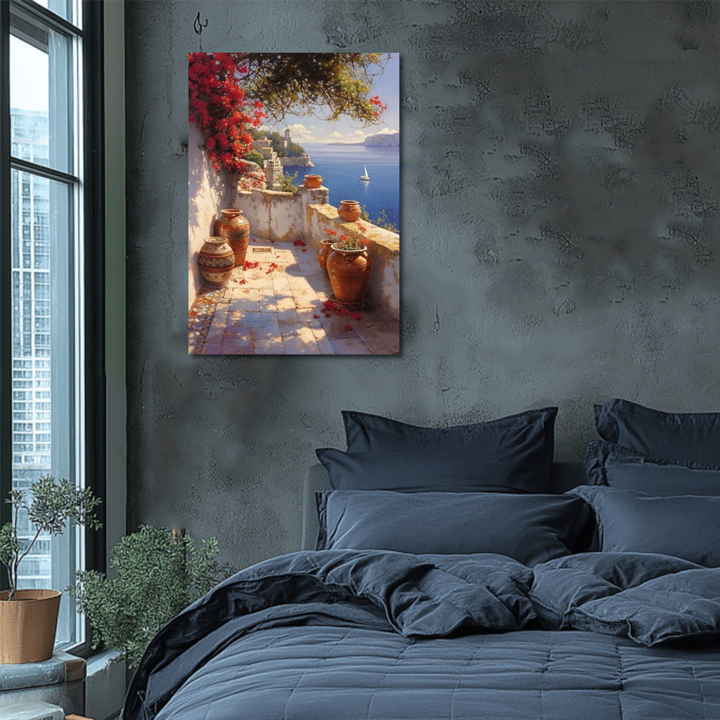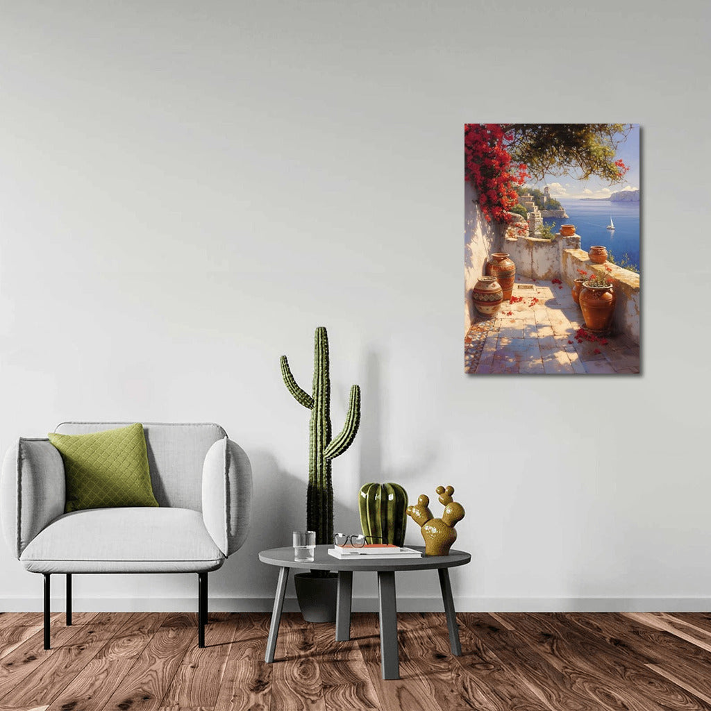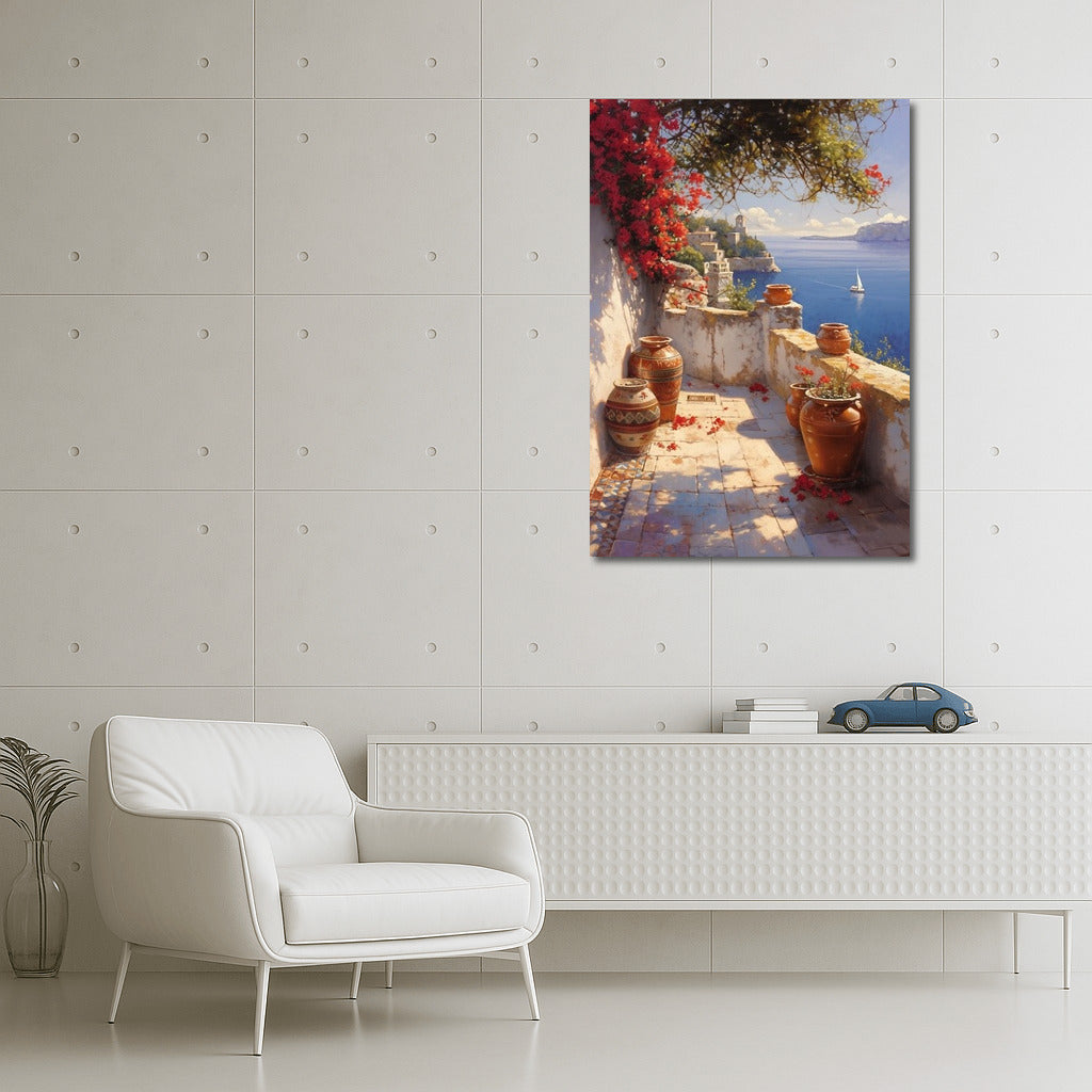 Mediterranean Idyll: A poster where a warm breeze and bright colors fill the space. Wall art for dreamers. See more from the collection: Mixed Wall Art