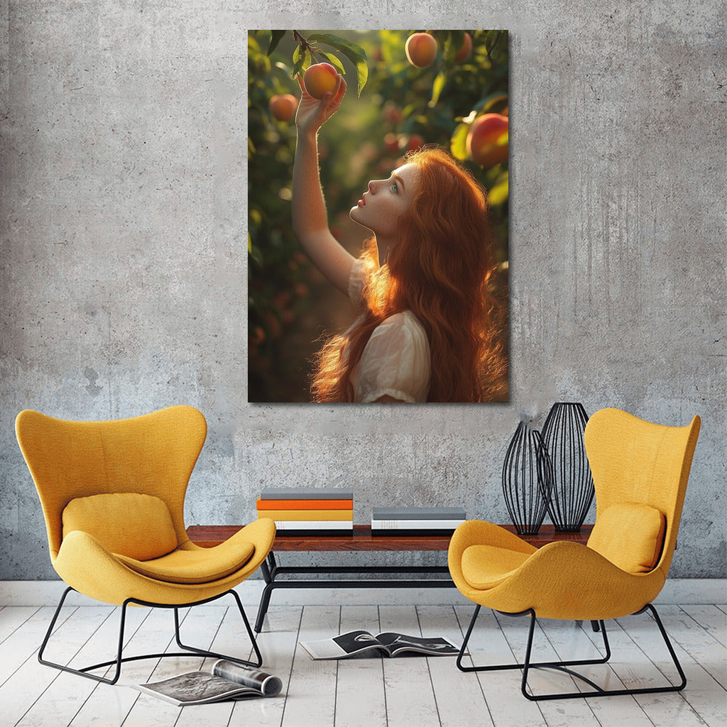 This vibrant painting of a girl in a fruit garden is the perfect wall art filled with light and natural beauty. See more from the collection: Wall Art with Women