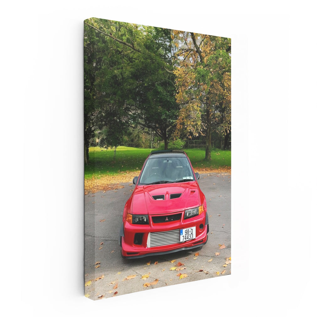Bright Red Mitsubishi Lancer in Park - Sporty Elegance Wall Art