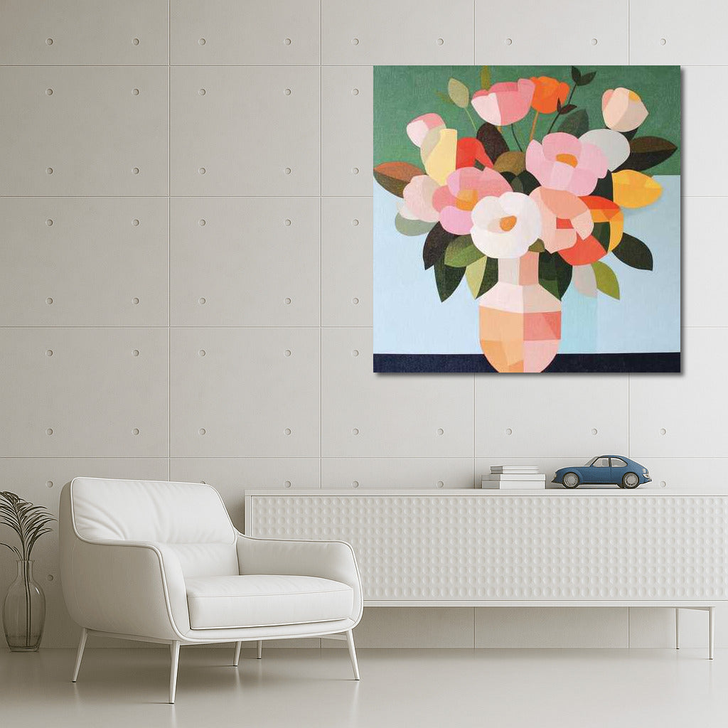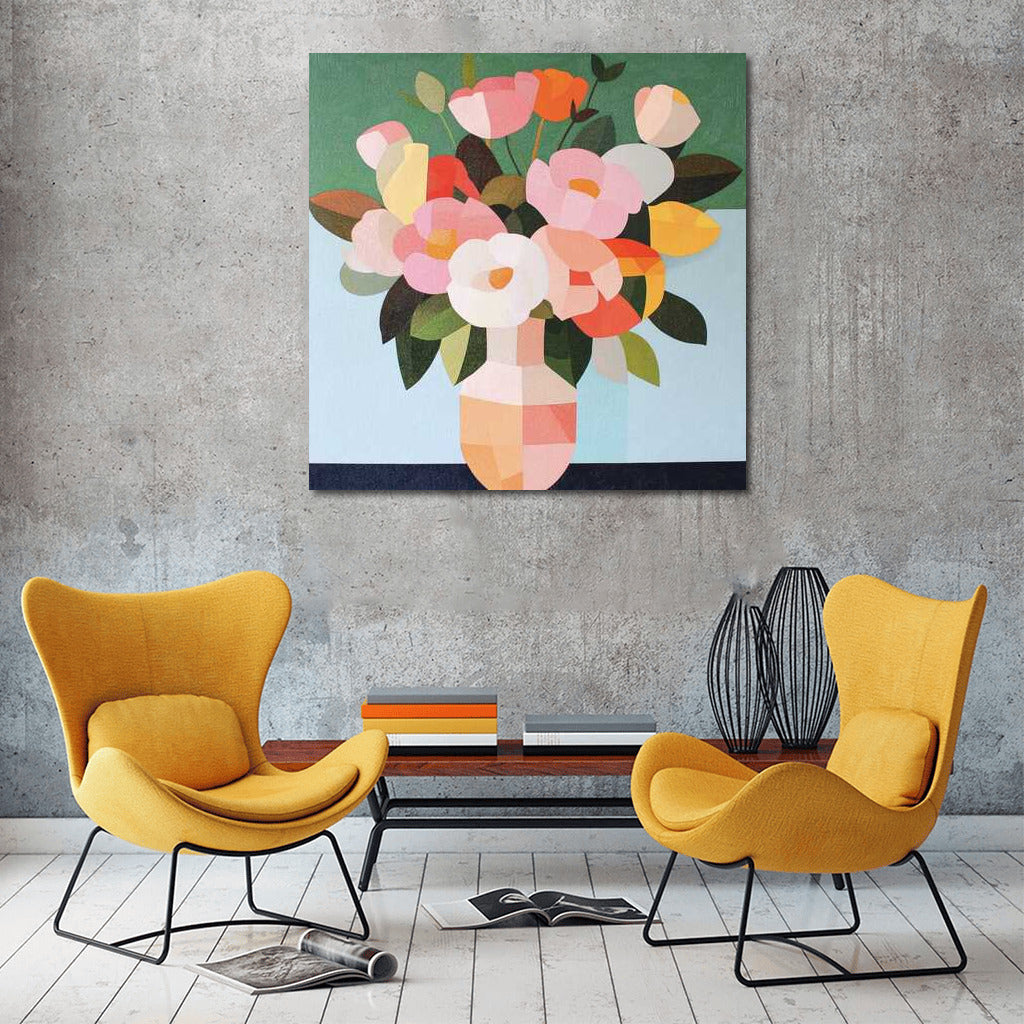 An abstract bouquet of roses comes to life in this painting, turning the wall art into a celebration of vibrant colors and shapes. See more from the collection: Flowers Art