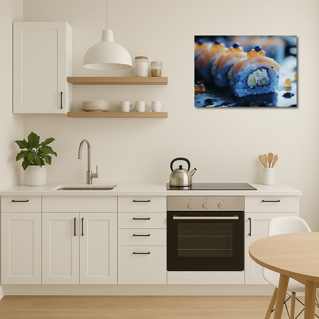 An elegant sushi painting: colorful rolls beckon on a poster. Dive into a world of flavors with this wall art! See more from the collection: Food Art