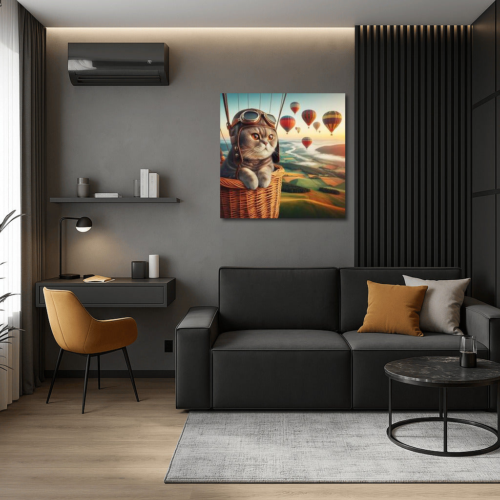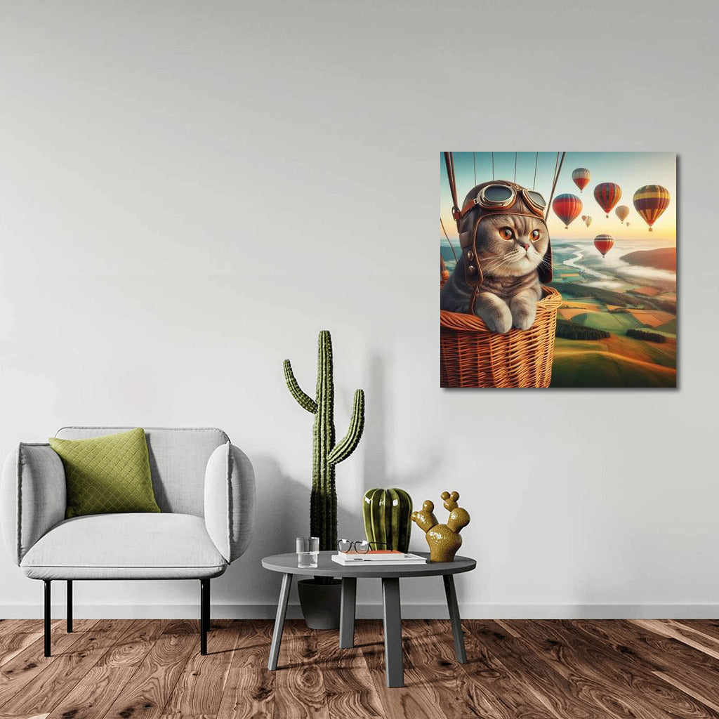 British cat in a hot air balloon: dreams of flight in every look. Perfect wall art for adventure lovers! See more from the collection: Animals Art