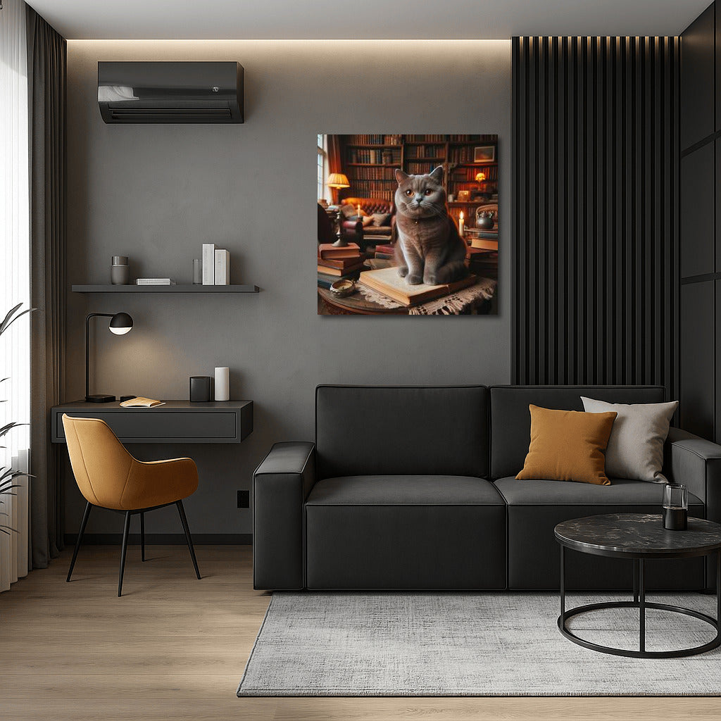 British Shorthair Cat in a Cosy Library: The Perfect Companion for Book and Cat Lovers Wall Art