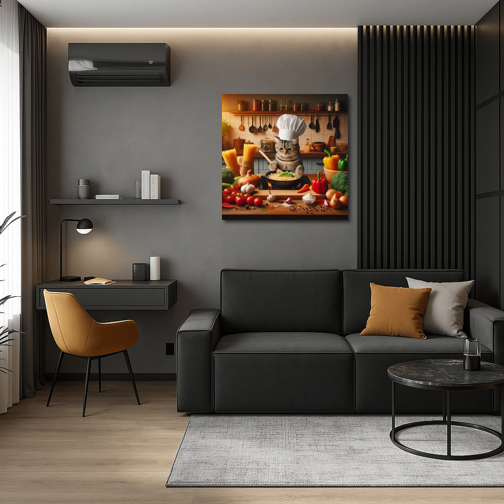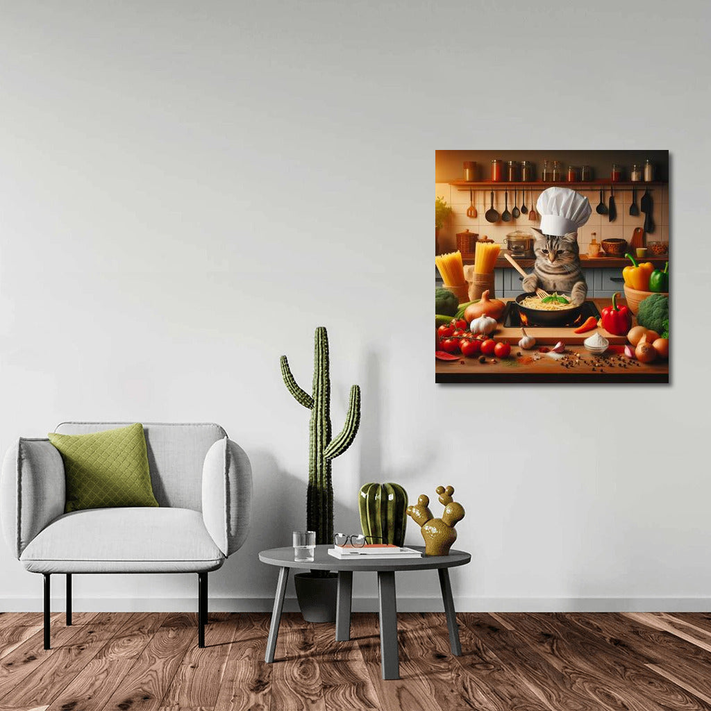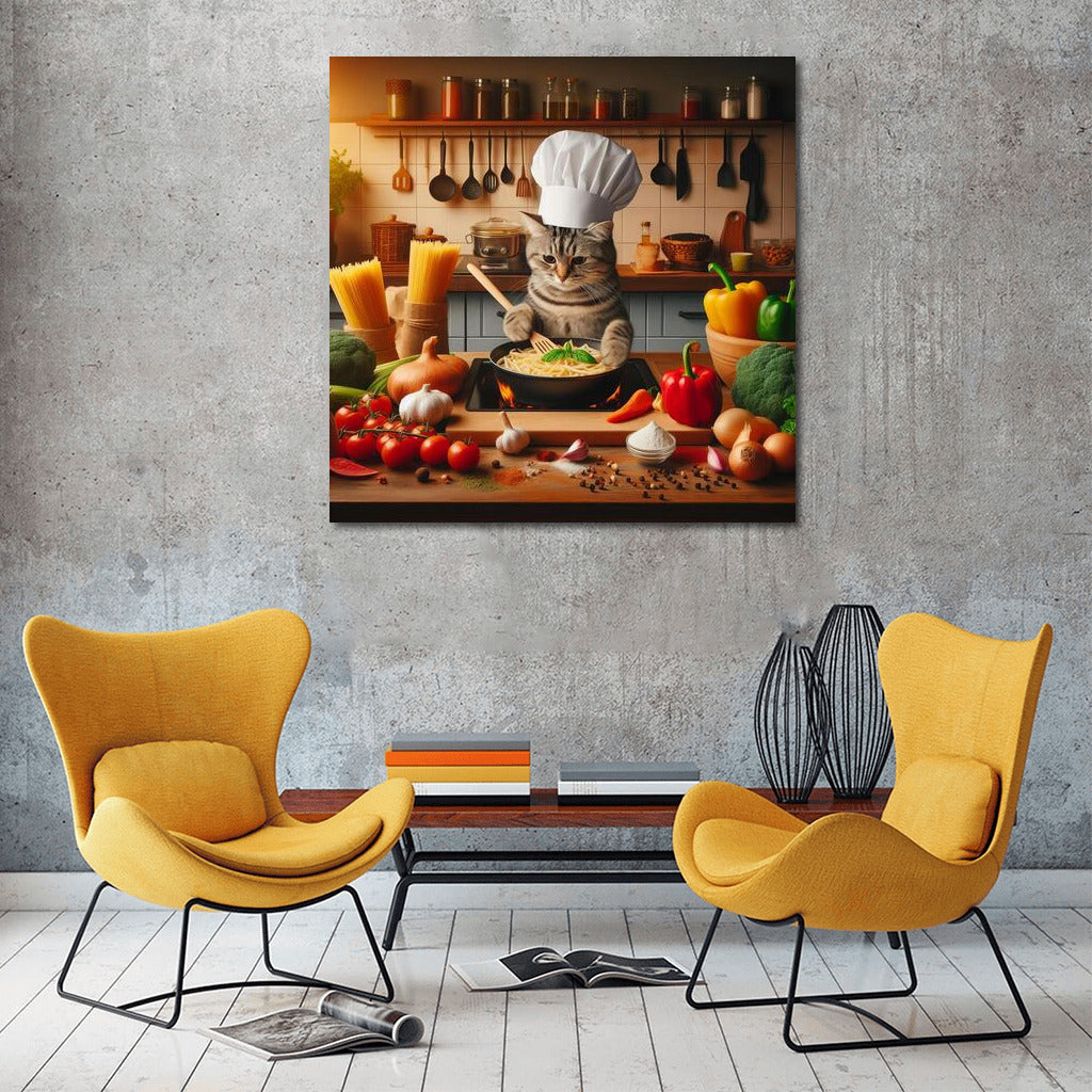British Shorthair Chef Cat: Cooking Pasta in an Italian Restaurant Wall Art