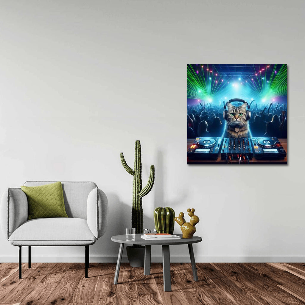 British Shorthair DJ Cat: Headphone Party with Laser Show Wall Art