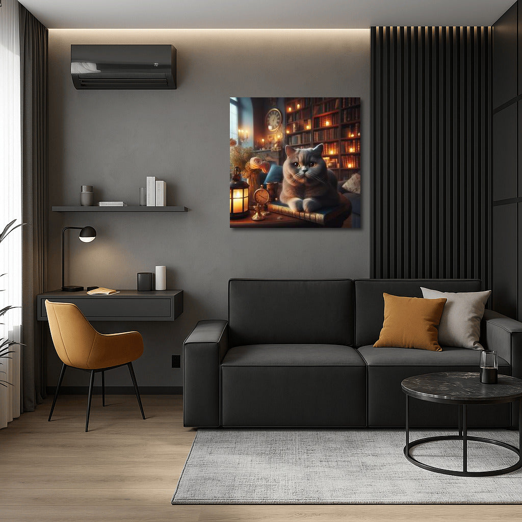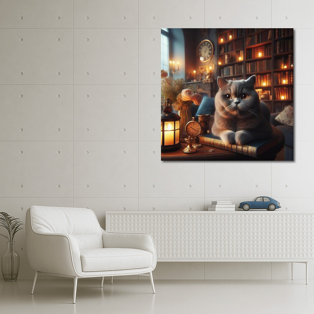 British Shorthair in the Cozy Library: Harmony and Tranquility Wall Art