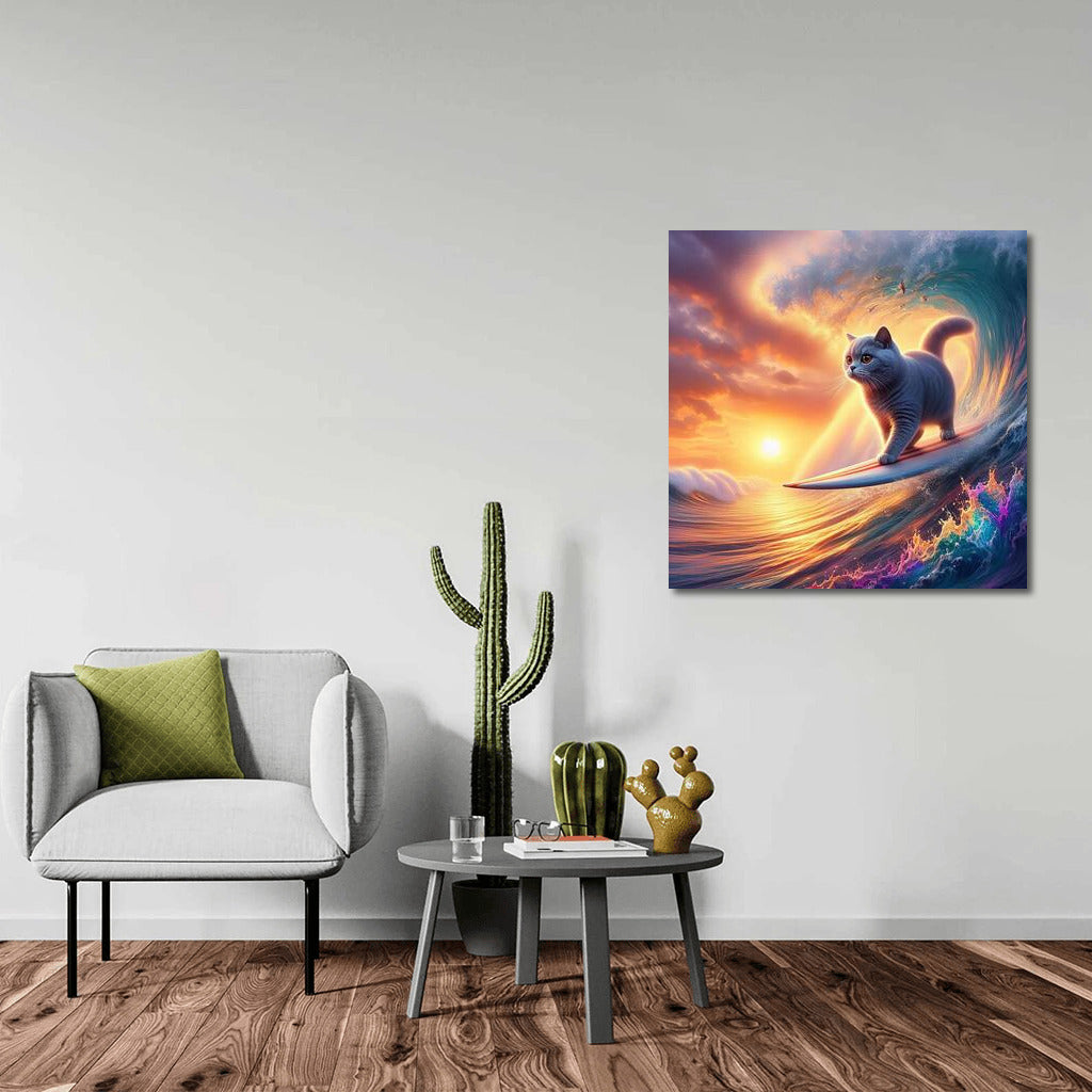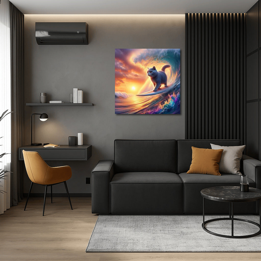 Dive into a dream world: British Shorthair on a Wave. Bright poster Surfer Cat on a Wave 2 for your interior! See more from the collection: Animals Art