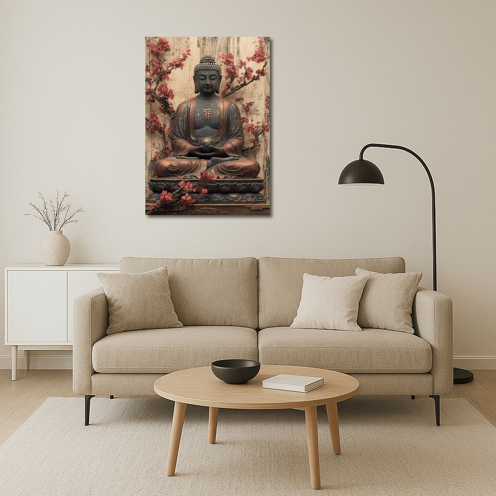 Buddha in Blooming Oasis: Tranquility and Harmony Wall Art