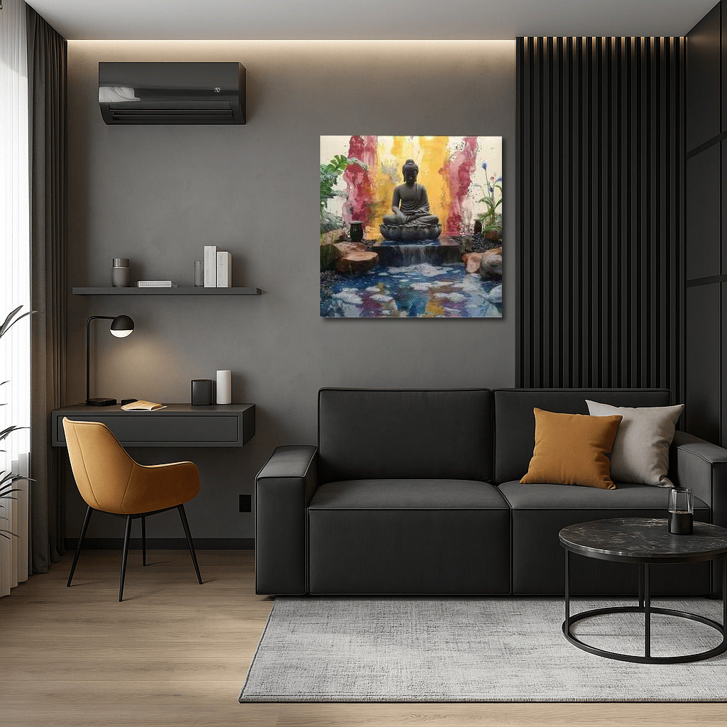 Get into Zen with this mesmerizing painting: Buddha in a flowing river, vibrant colors and harmony of nature for your home. See more from the collection: Buddhism Art