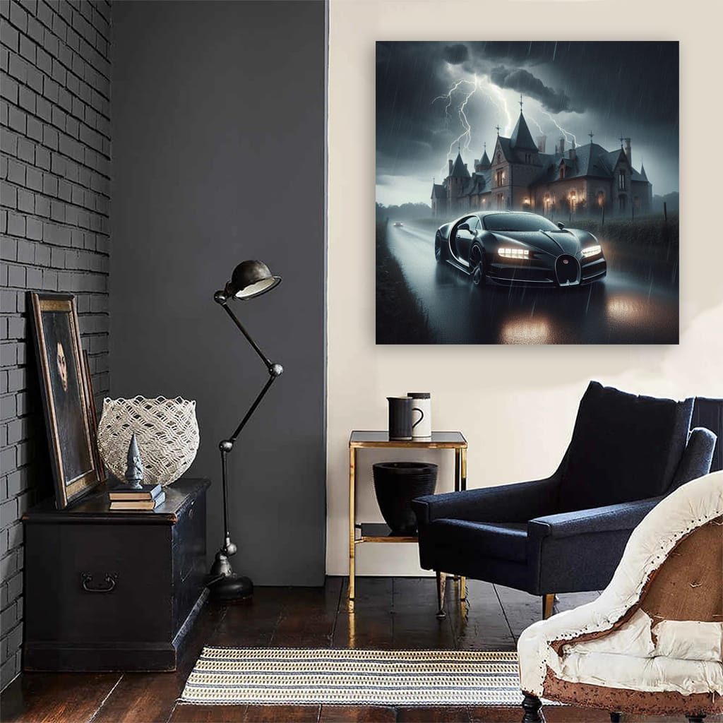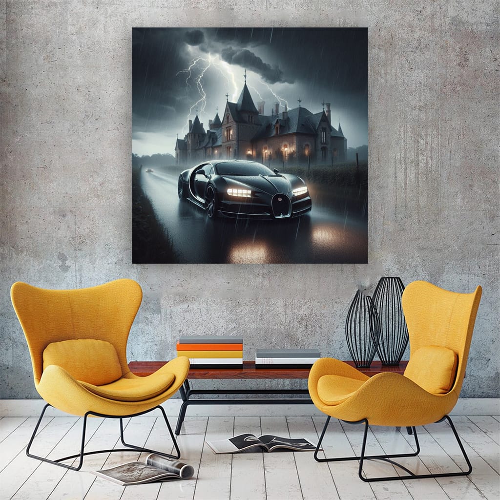 Bugatti La Voiture Noire Thunderstorm - Epitome of Luxury Wall Art