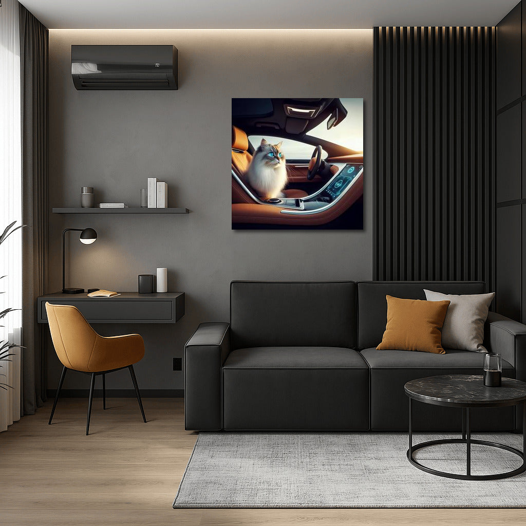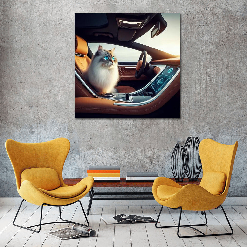 Burmese Cat Driving Futuristic Car: Grace and Style of the Future Wall Art