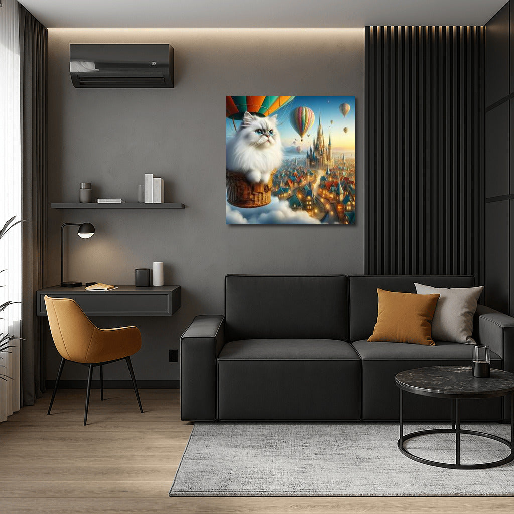 Hang your dream on the wall! A poster of a Burmese cat in a hot air balloon above a fairytale city will give you inspiration and comfort. See more from the collection: Animals Art