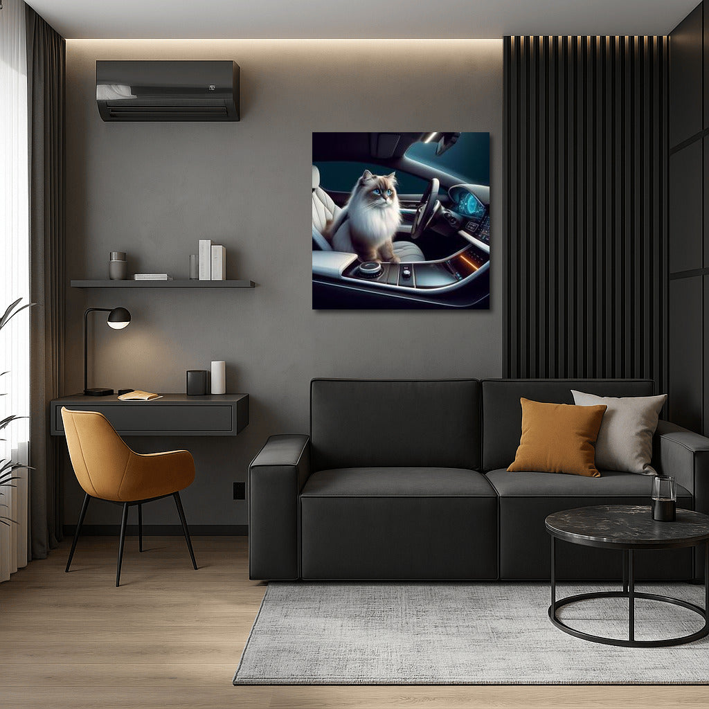 Awesome poster of a Birman cat in a futuristic car. Wall art where style and future are in every stroke. See more from the collection: Animals Art
