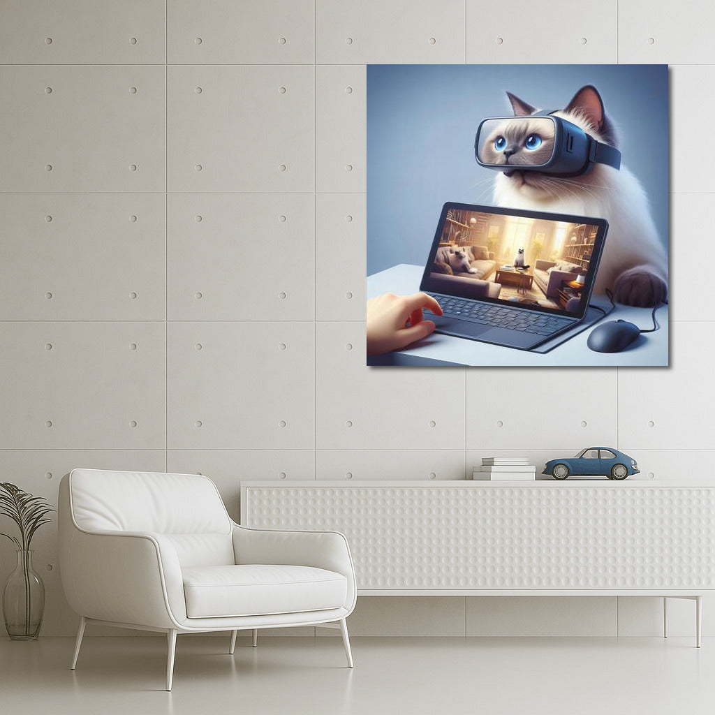 Burmese Cat in Virtual Reality: A Furry Fantasy World Wall Art