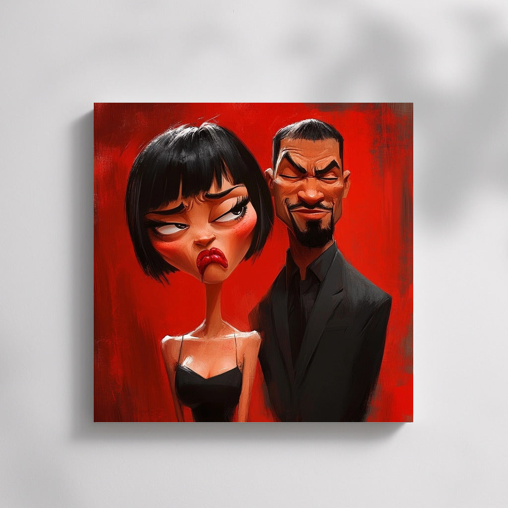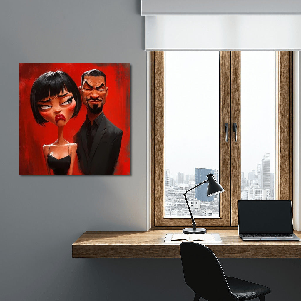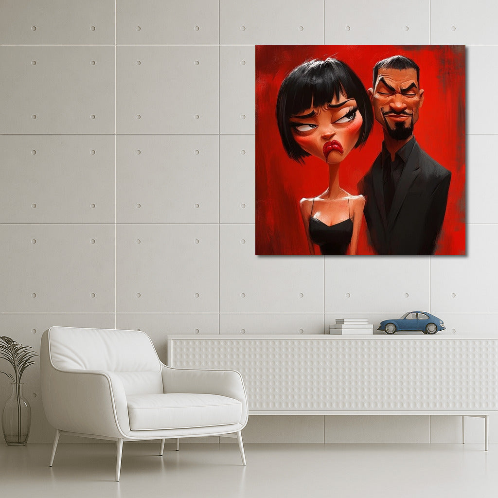 Emotional poster: a girl and a man on a bright red background express a storm of emotions. The perfect wall art for your interior! See more from the collection: Mixed Wall Art