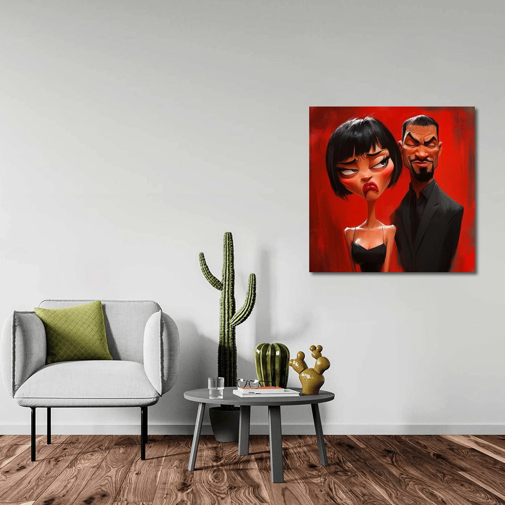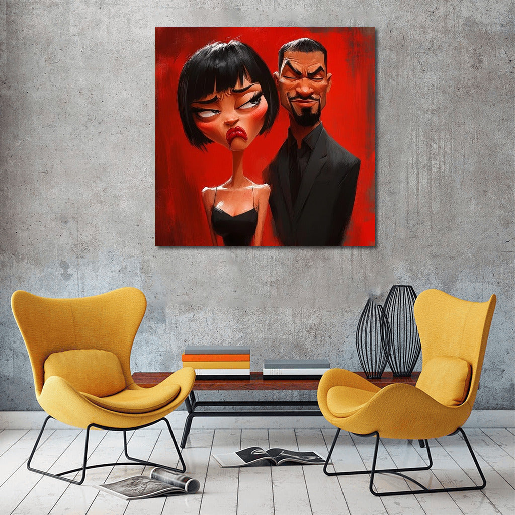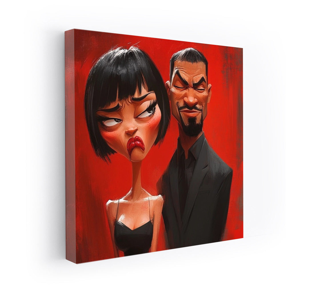 Emotional poster: a girl and a man on a bright red background express a storm of emotions. The perfect wall art for your interior! See more from the collection: Mixed Wall Art
