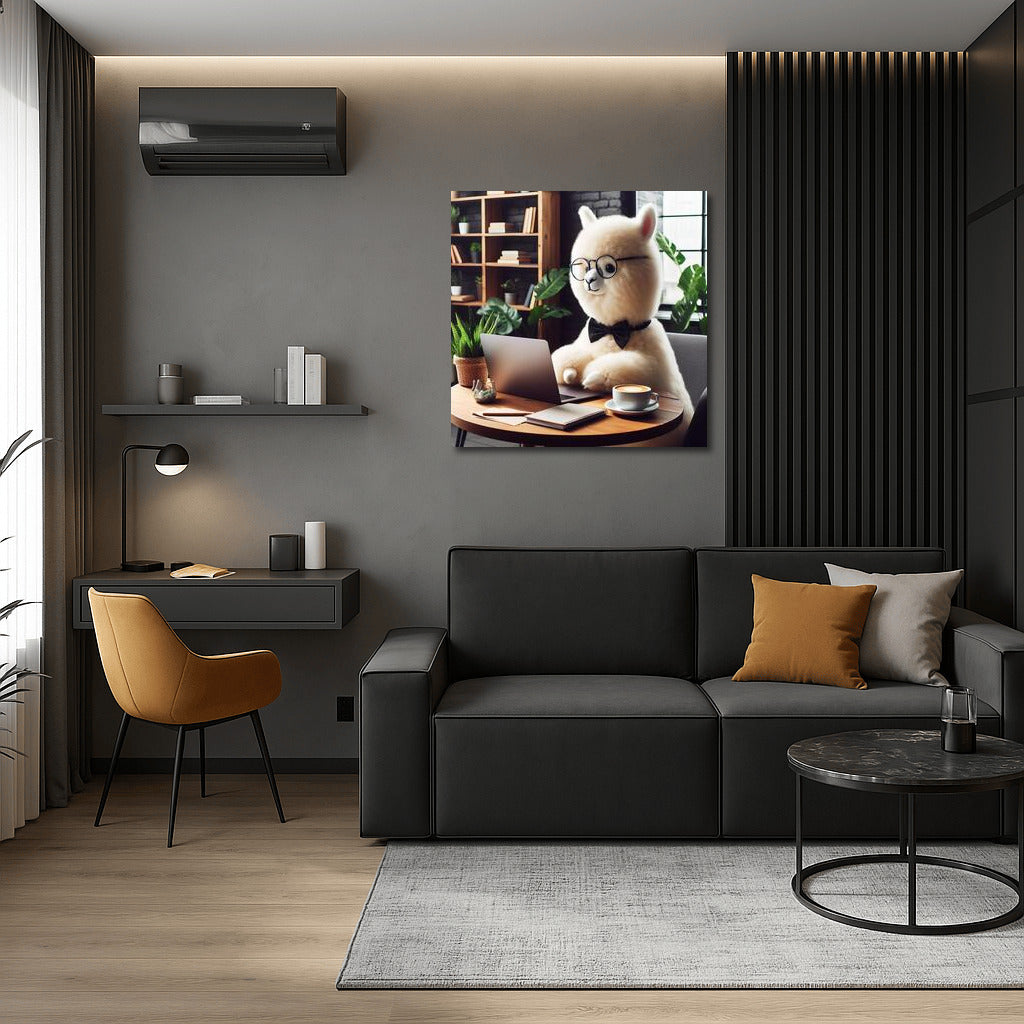 Business Alpaca with Laptop in Cafe: Style for Interior Wall Art