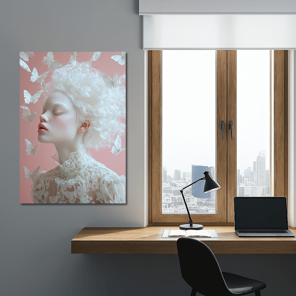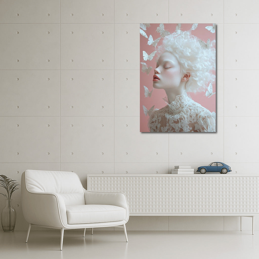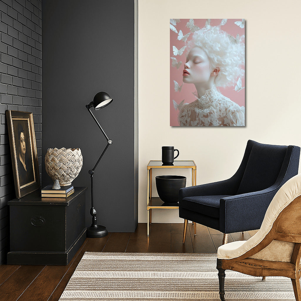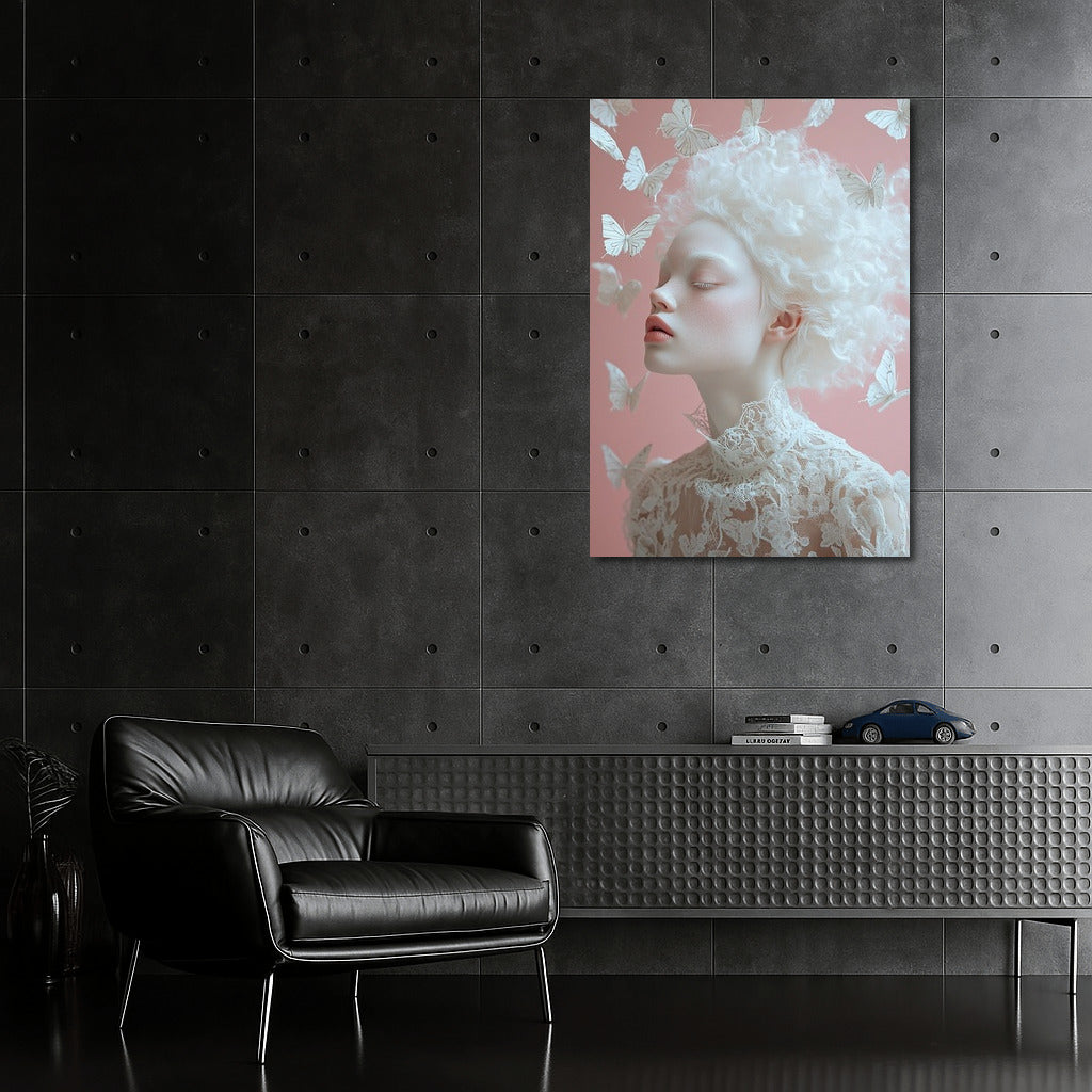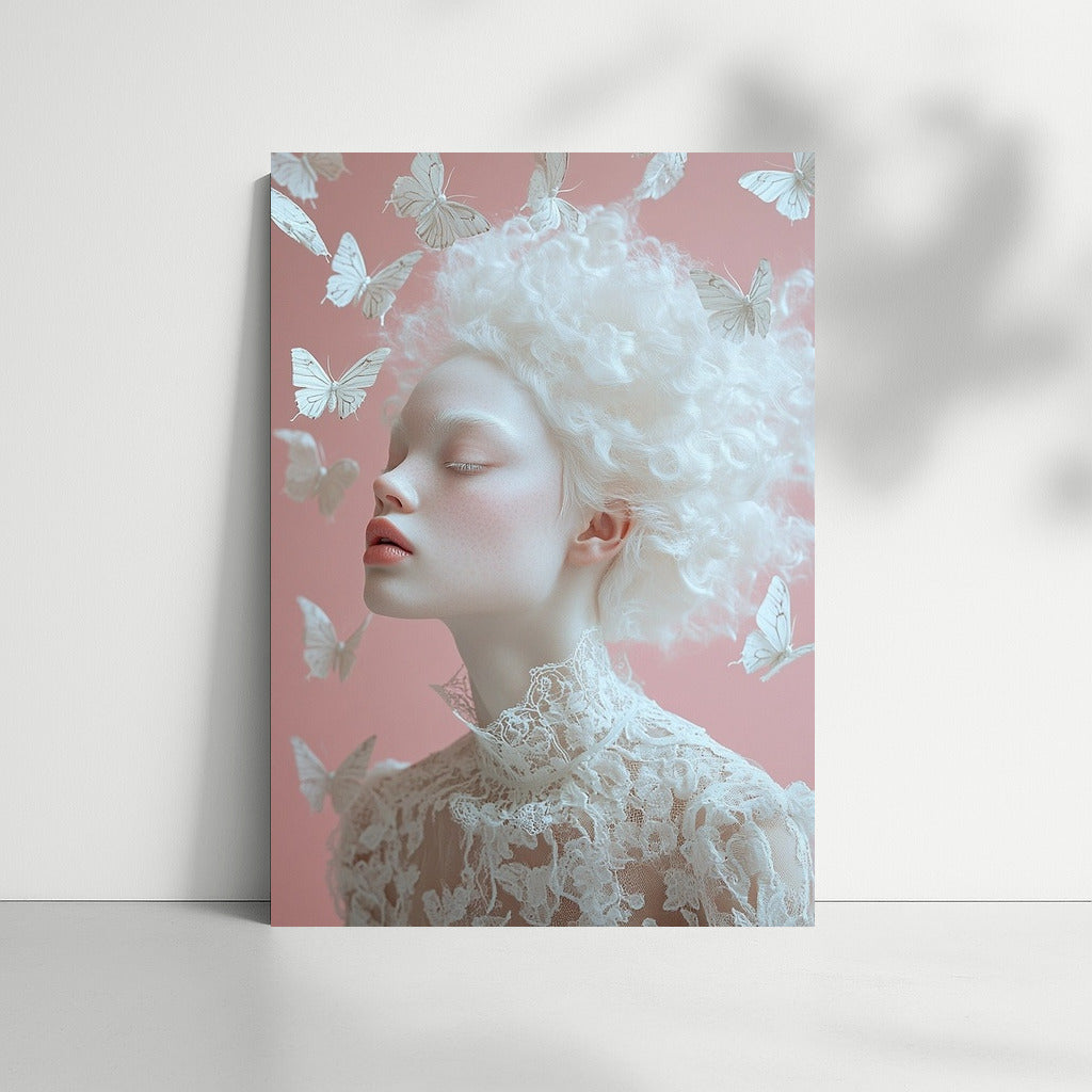 Ephemeral beauty on the poster: a graceful figure surrounded by butterflies, creating a fleeting miracle of wall art. See more from the collection: Mixed Wall Art