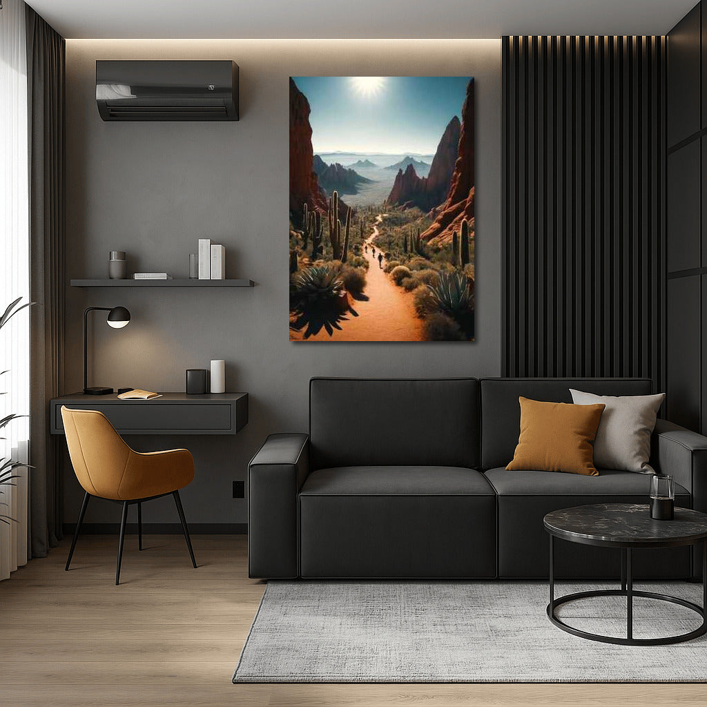 A breathtaking view of Arizona: a desert trail and the majesty of cacti are embodied in this wall art. True Country spirit! See more from the collection: Country Art