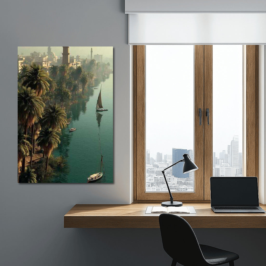 Immerse yourself in the atmosphere of Cairo with this painting. The cityscapes and skyscrapers of Egypt on your wall are true art. See more from the collection: Cairo, Egypt Art