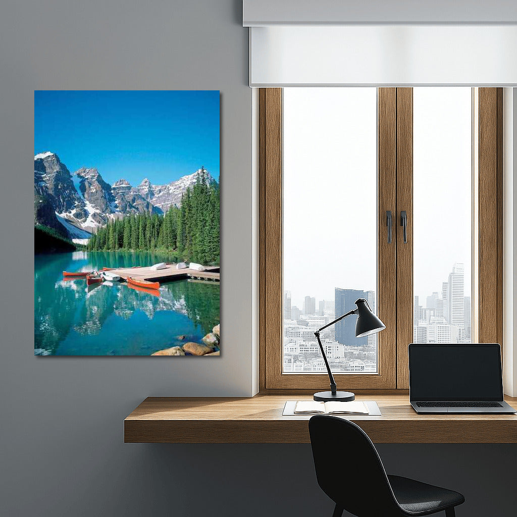 paintingsque wall art with views of Canada's mountains and lake. Feel the tranquility of nature in your space. See more from the collection: Canada Art