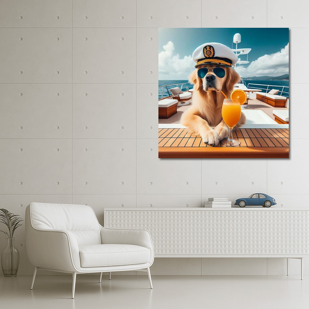 Captain's Life: Stylish Dog on a Luxury Yacht in the Sun Wall Art