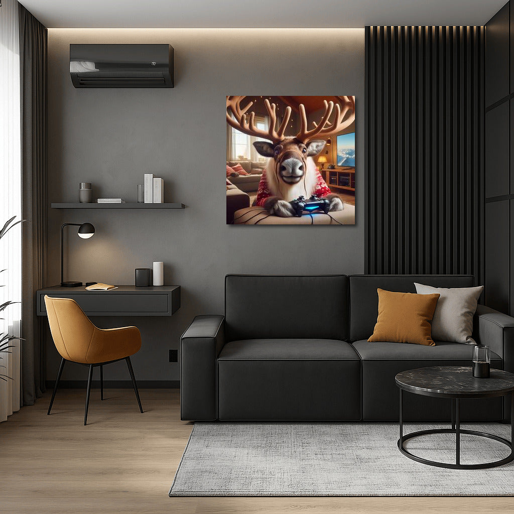 Poster: Caribou in a cozy living room. Exciting wall art where nature and modern technology meet in play! See more from the collection: Animals Art