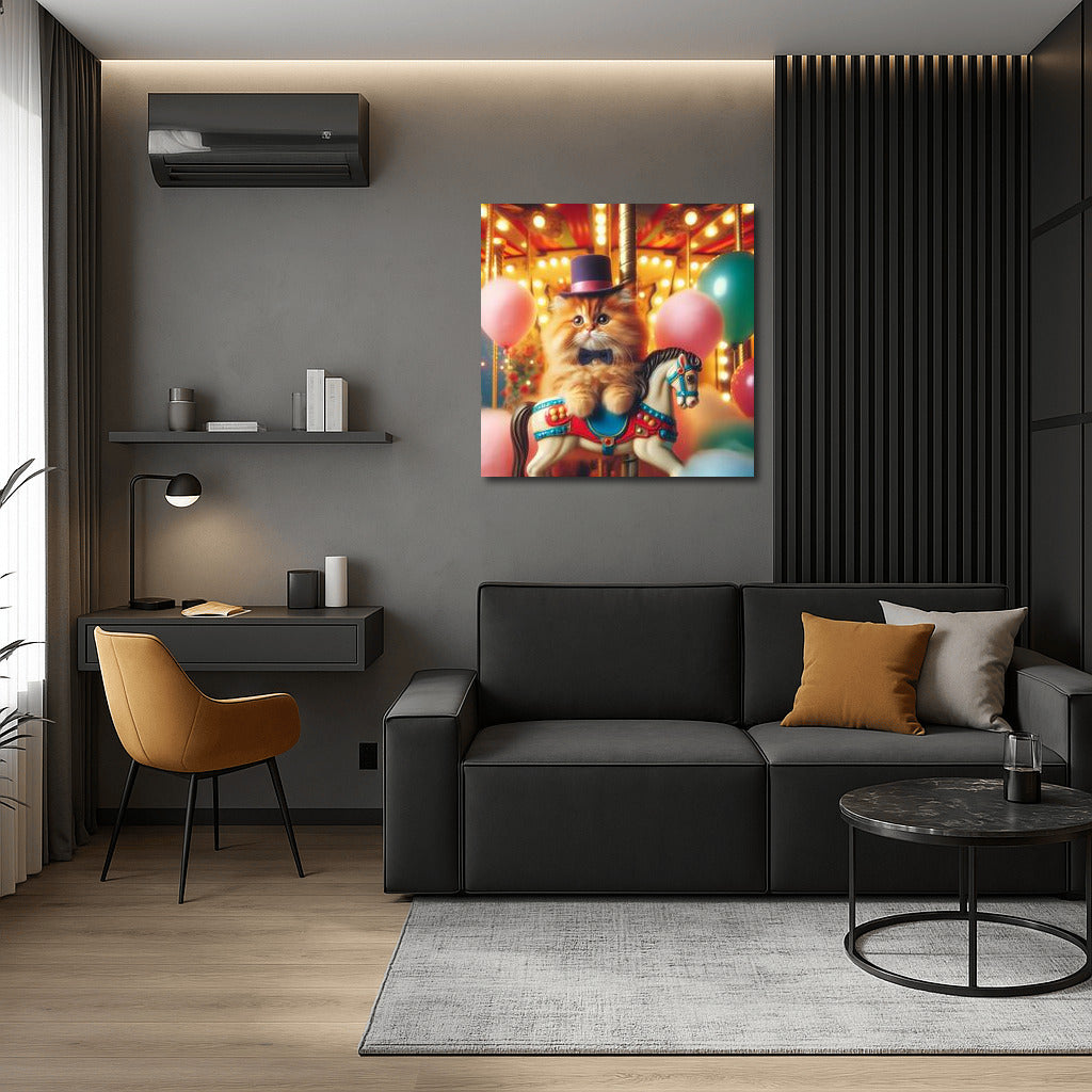 Carnival Cat in a Top Hat on the Carousel – Magic in Your Home Wall Art