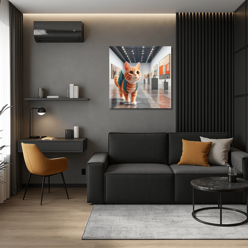 Cat in the Museum: Wall art comes alive in the eyes of a furry critic. This painting will add charm to any interior! See more from the collection: Animals Art