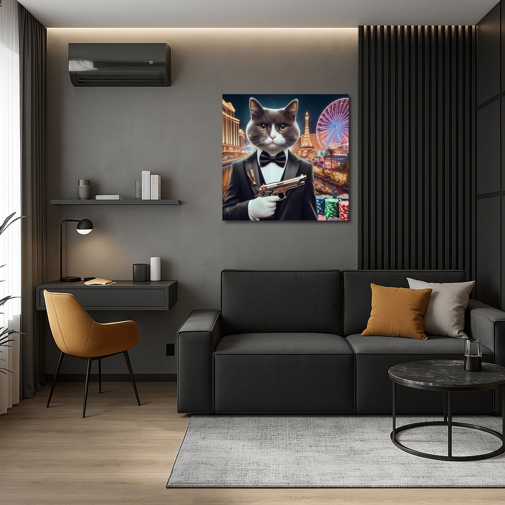Cat-Agent 007: Stylish Tuxedo and Casino Wall Art