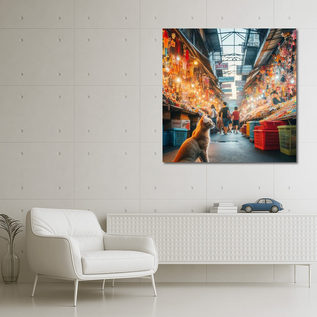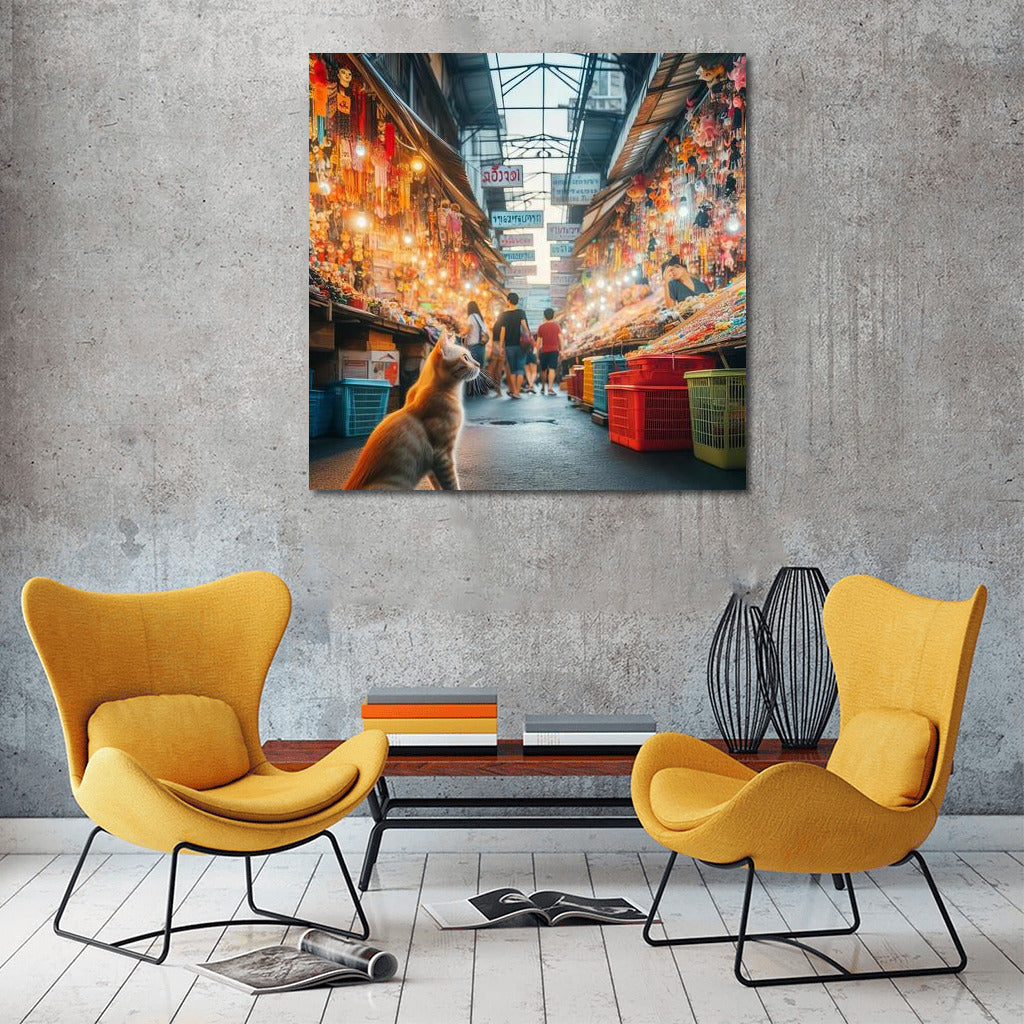 Cat among the colors of Bangkok: Live Bazaar Wall Art