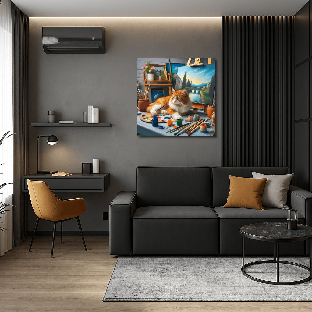 Cat-artist in a creative workshop: the magic of brushes and paints Wall Art