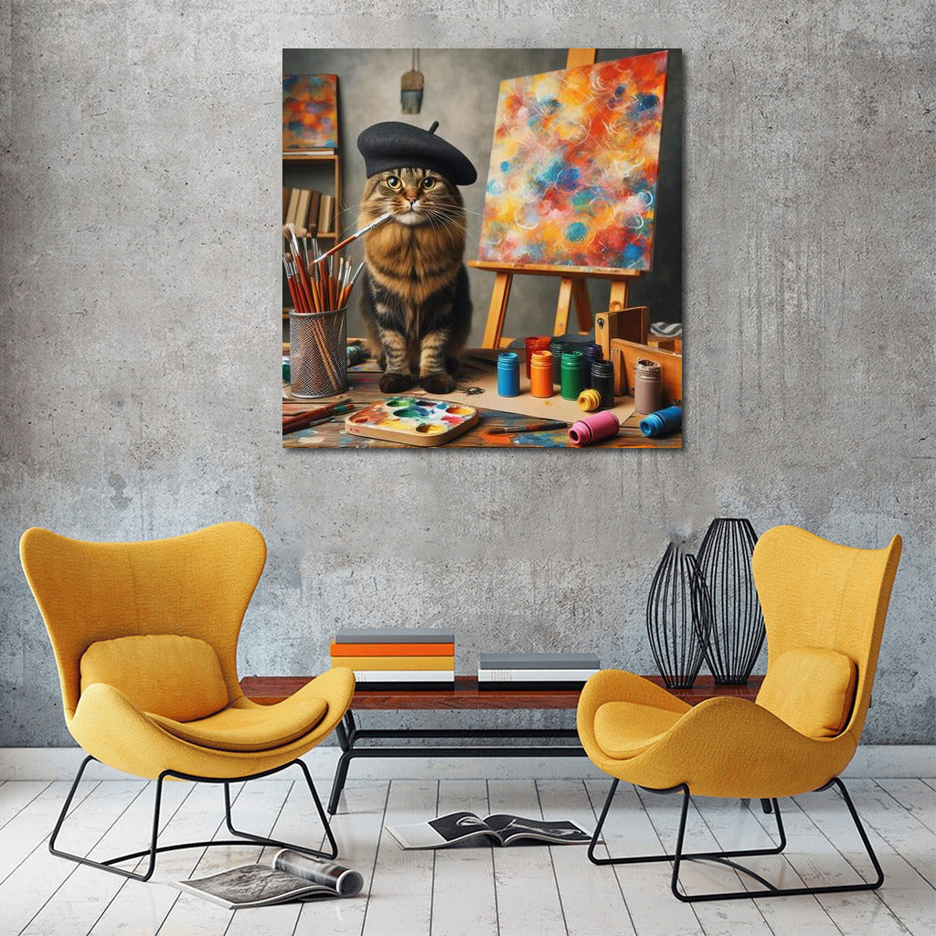 Cat-artist in the studio: inspiration and comfort on canvas Wall Art