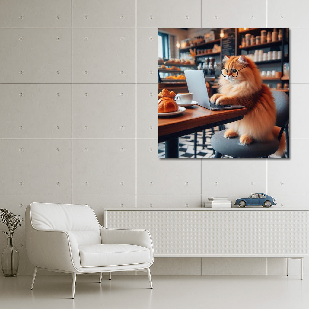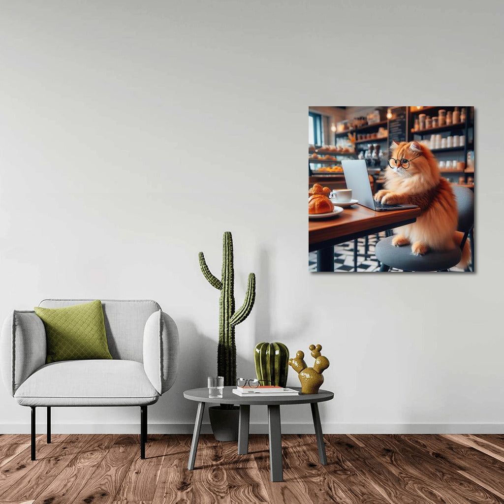 Cat-Barista at the Laptop: Working Day in the Cafe Wall Art