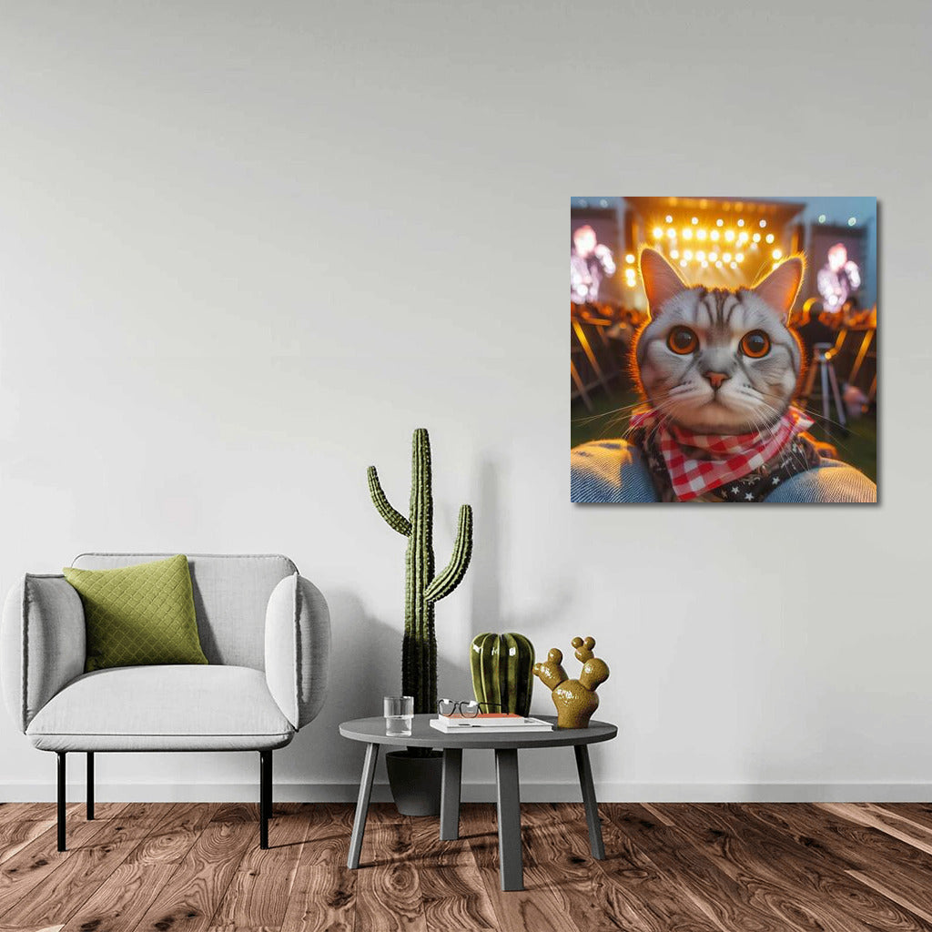 A concert of star scale through the eyes of a cat! A bright poster will enliven any space with an atmosphere of fun and music. See more from the collection: American Shorthair Cat Art