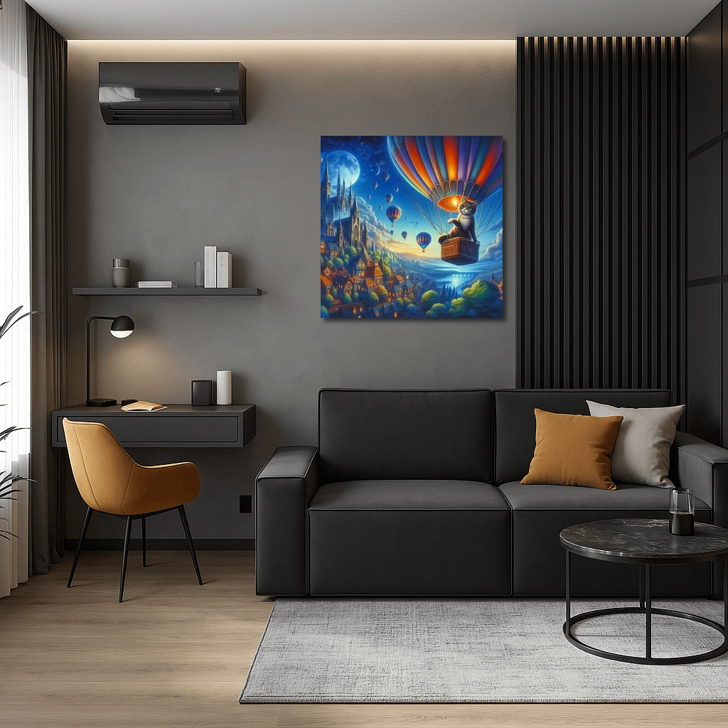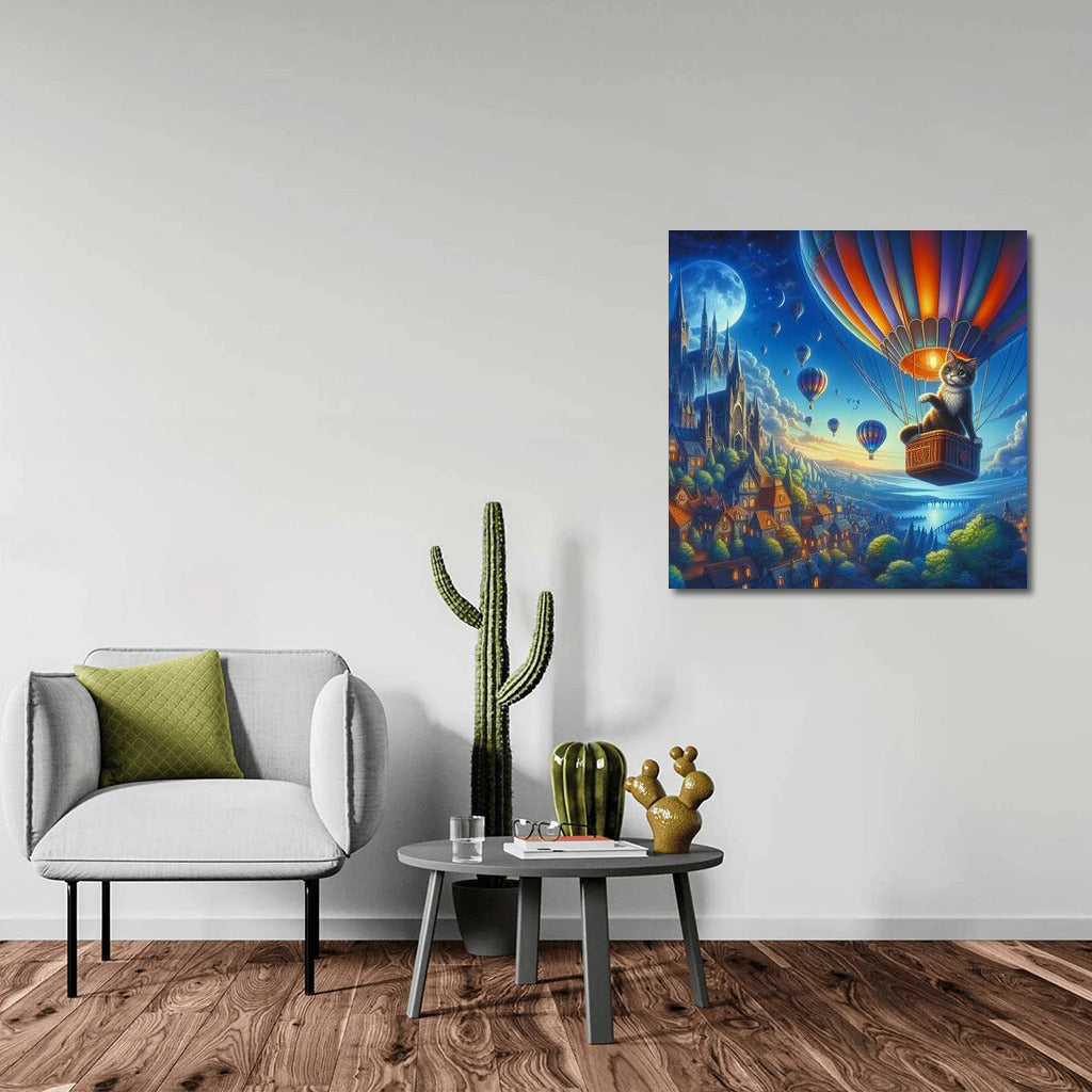 Cat in a Balloon over a Fairytale City: Magic and Adventure Wall Art