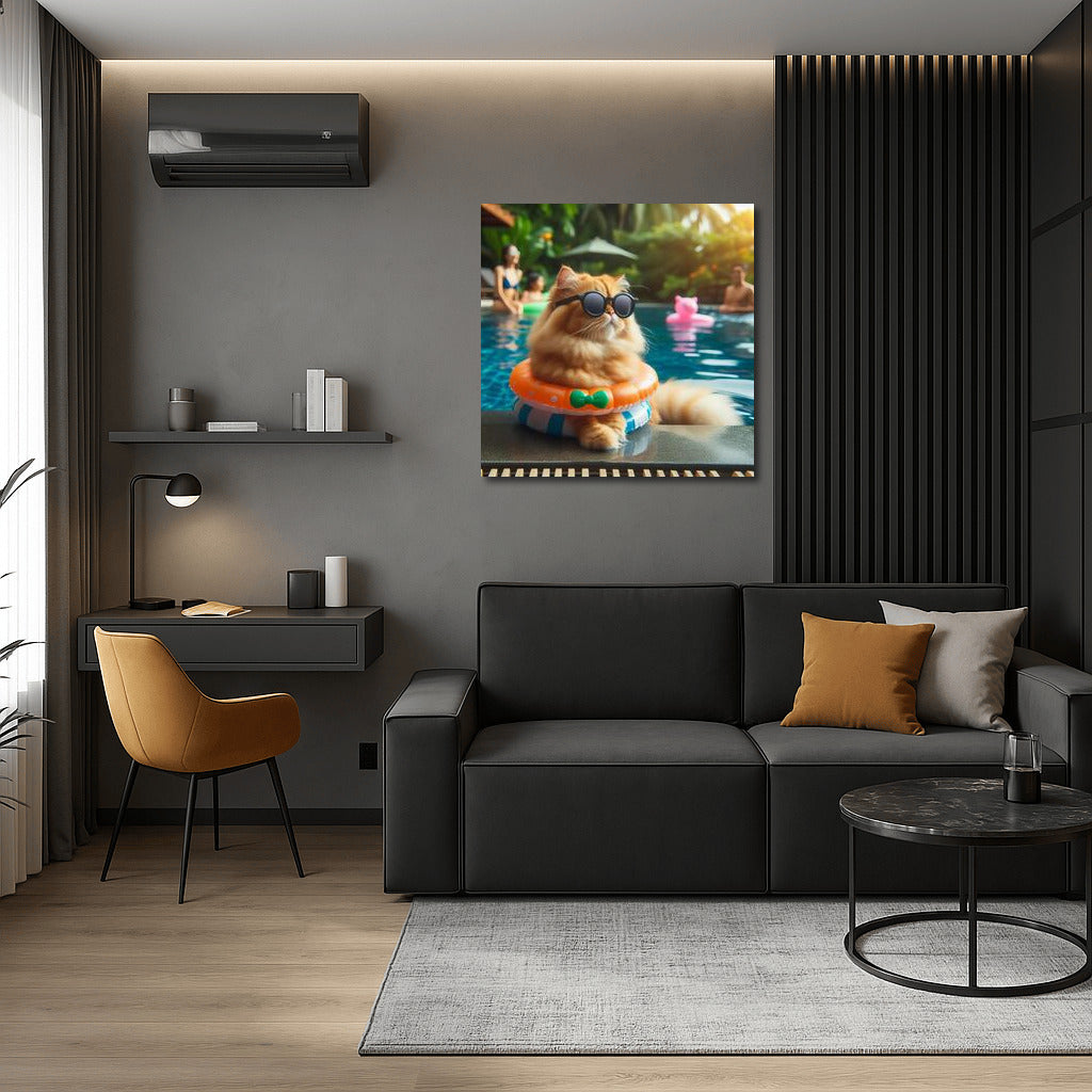 Cat in Glasses at Pool Party: Summer Relaxation Wall Art