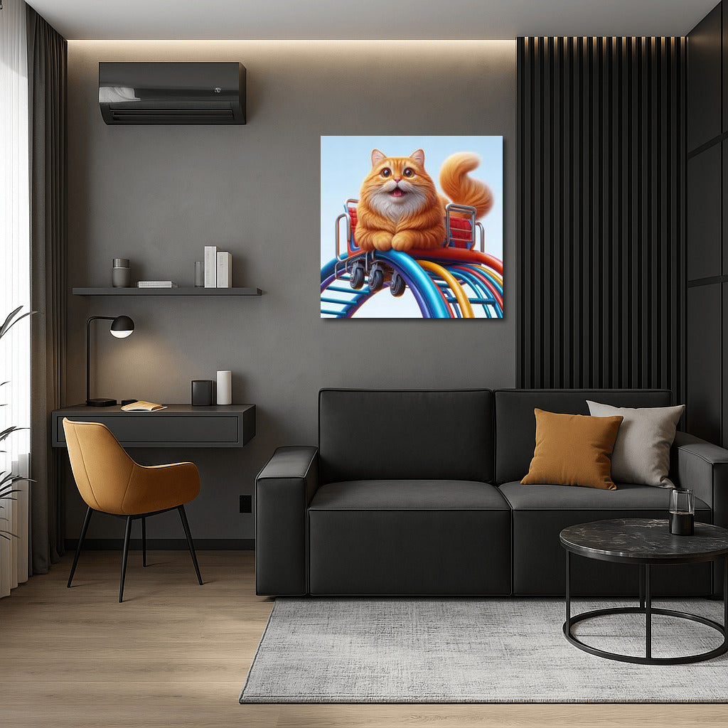 Fluffy cat enjoying the rides at the park! A bright poster will add joy and coziness to any space. Dream wall art! See more from the collection: Animals Art