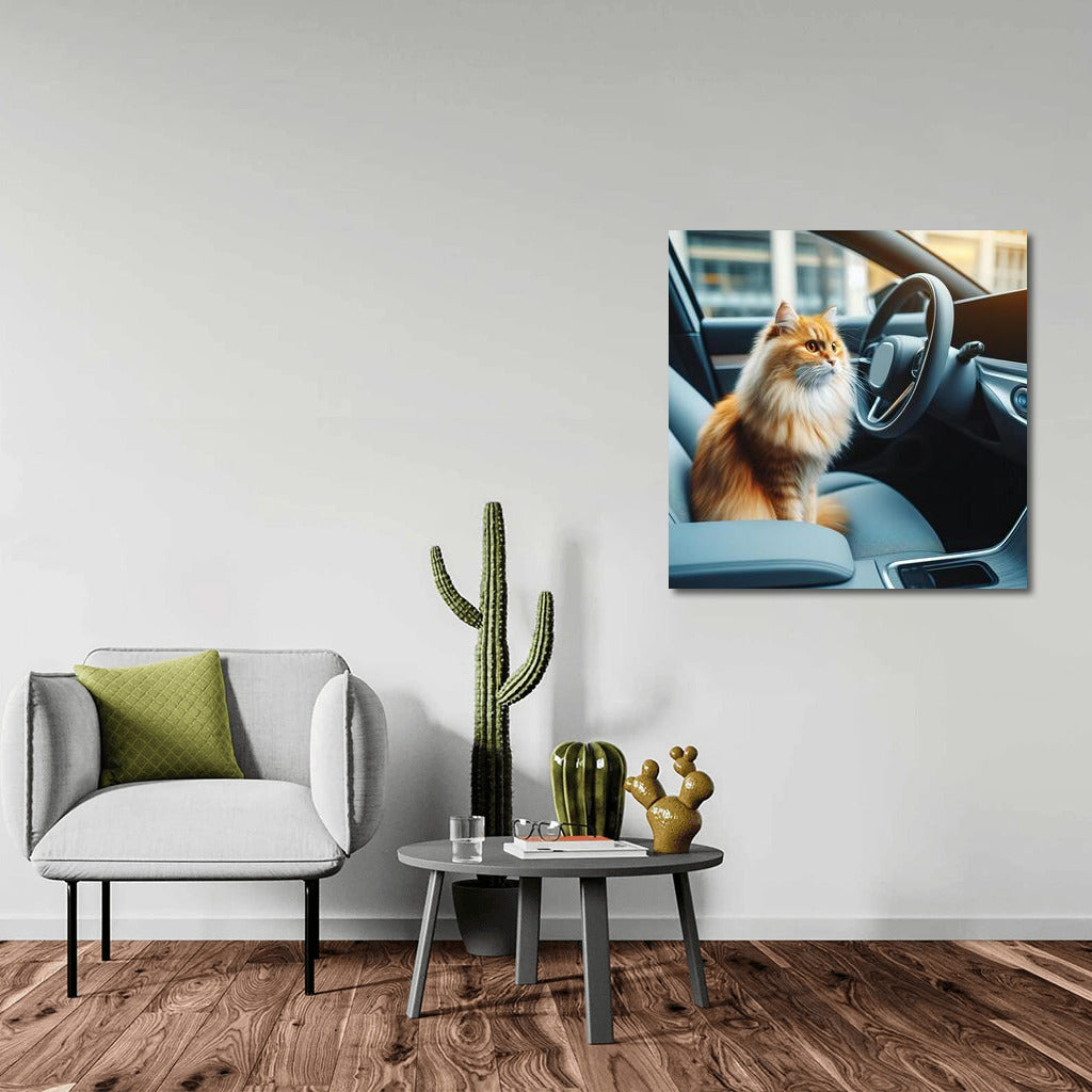 Cat in the Car of the Future: A Furry Adventure Wall Art