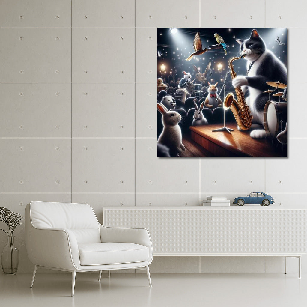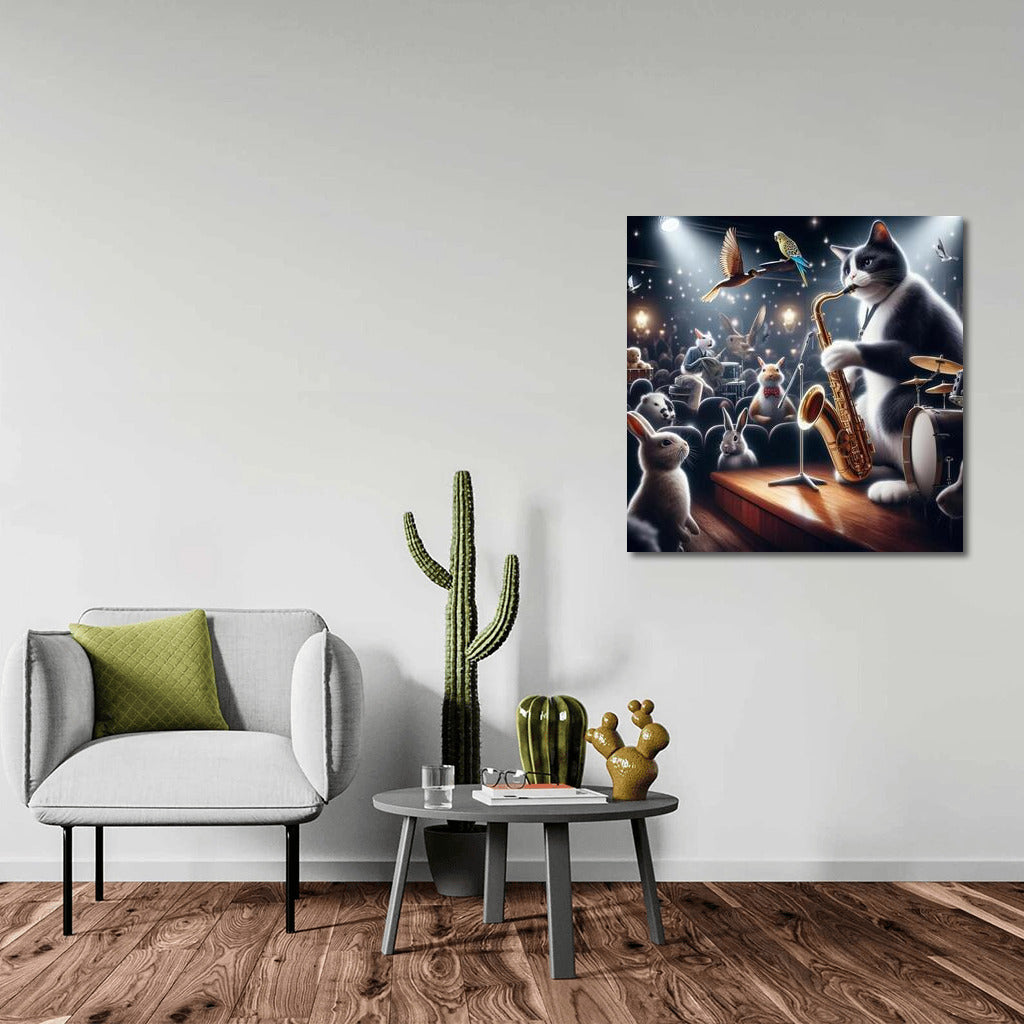 Cat in a Jazz Club: A poster where music comes alive. Wall art with notes of magic and charm. See more from the collection: Animals Art