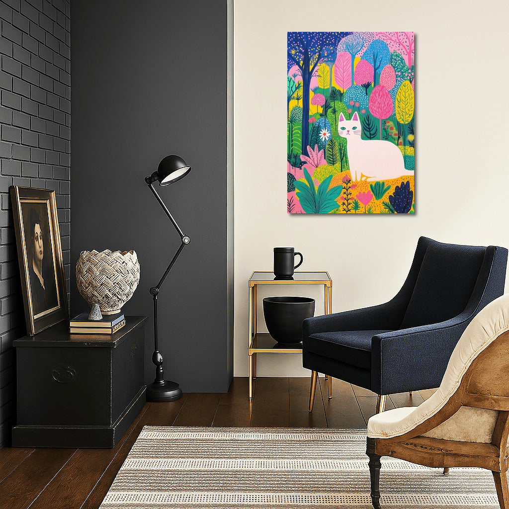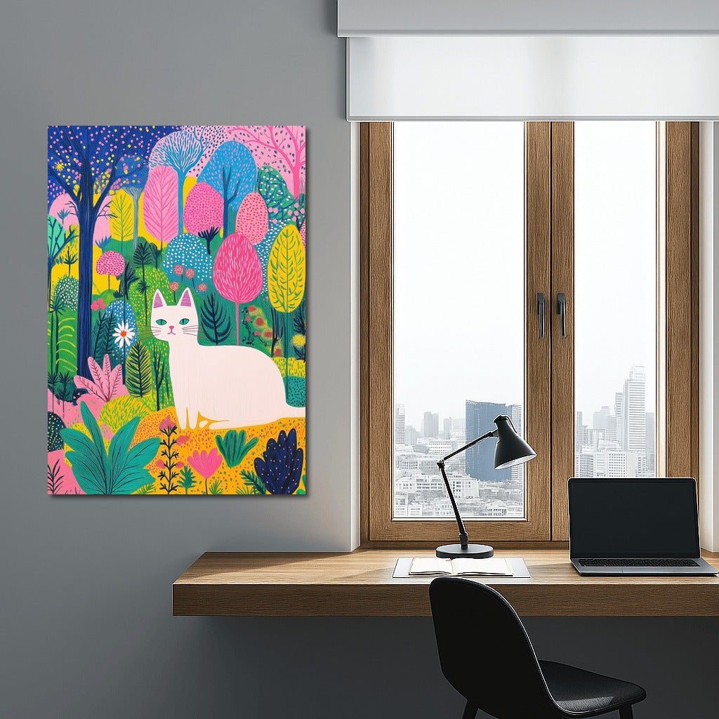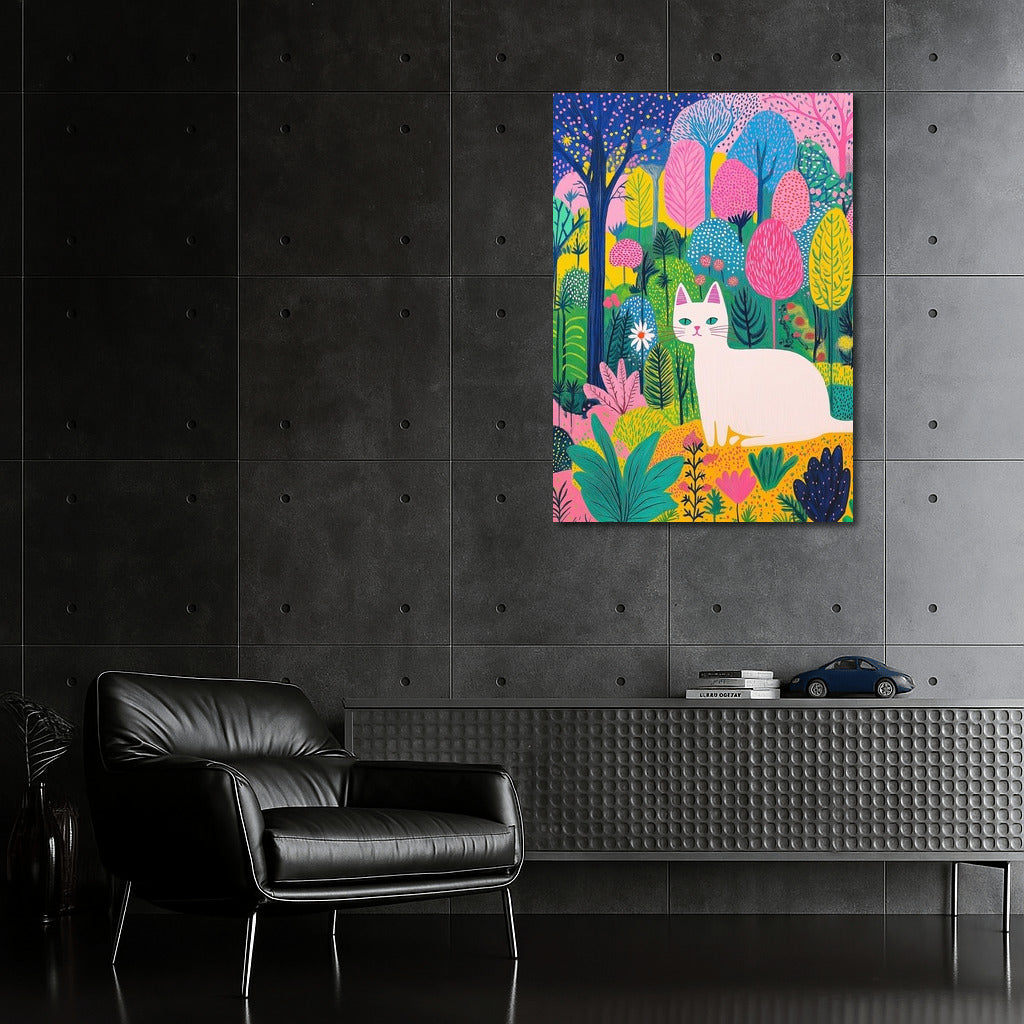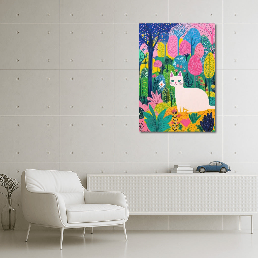 A vibrant poster of a cat in a fairytale forest. An explosion of colors and magic make this wall art a real find! See more from the collection: Animals Art