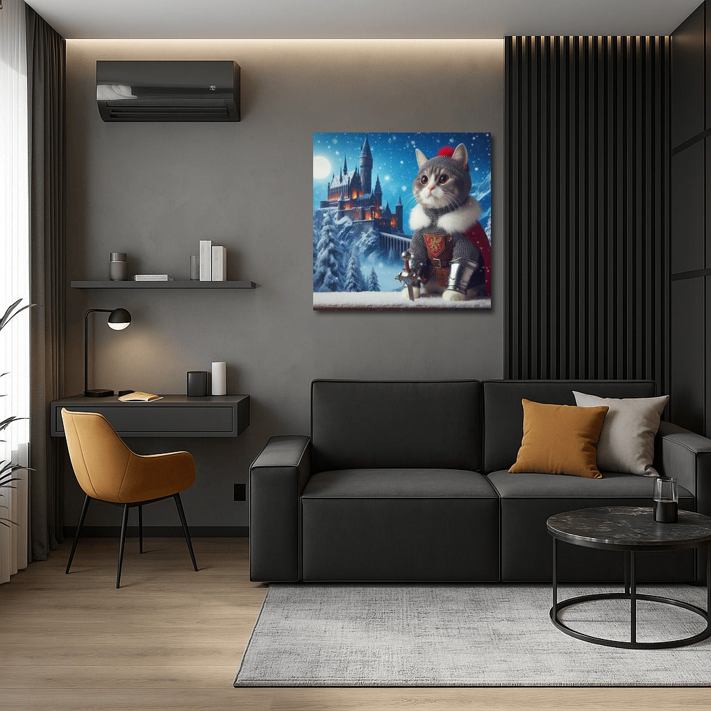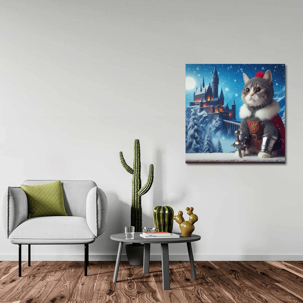Cat Knight in Snow Castle: Game of Thrones Style Fantasy Wall Art