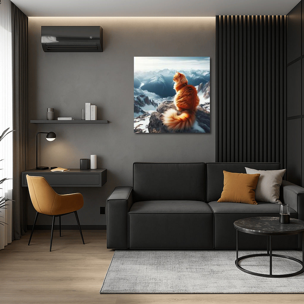 Cat on Top of the World: Furry Explorer Admires Mountain Scenery Wall Art