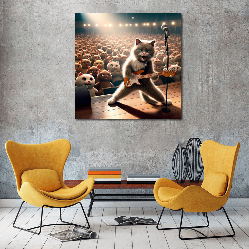 Cat Rock Concert: Plush Fans in Ecstasy Wall Art