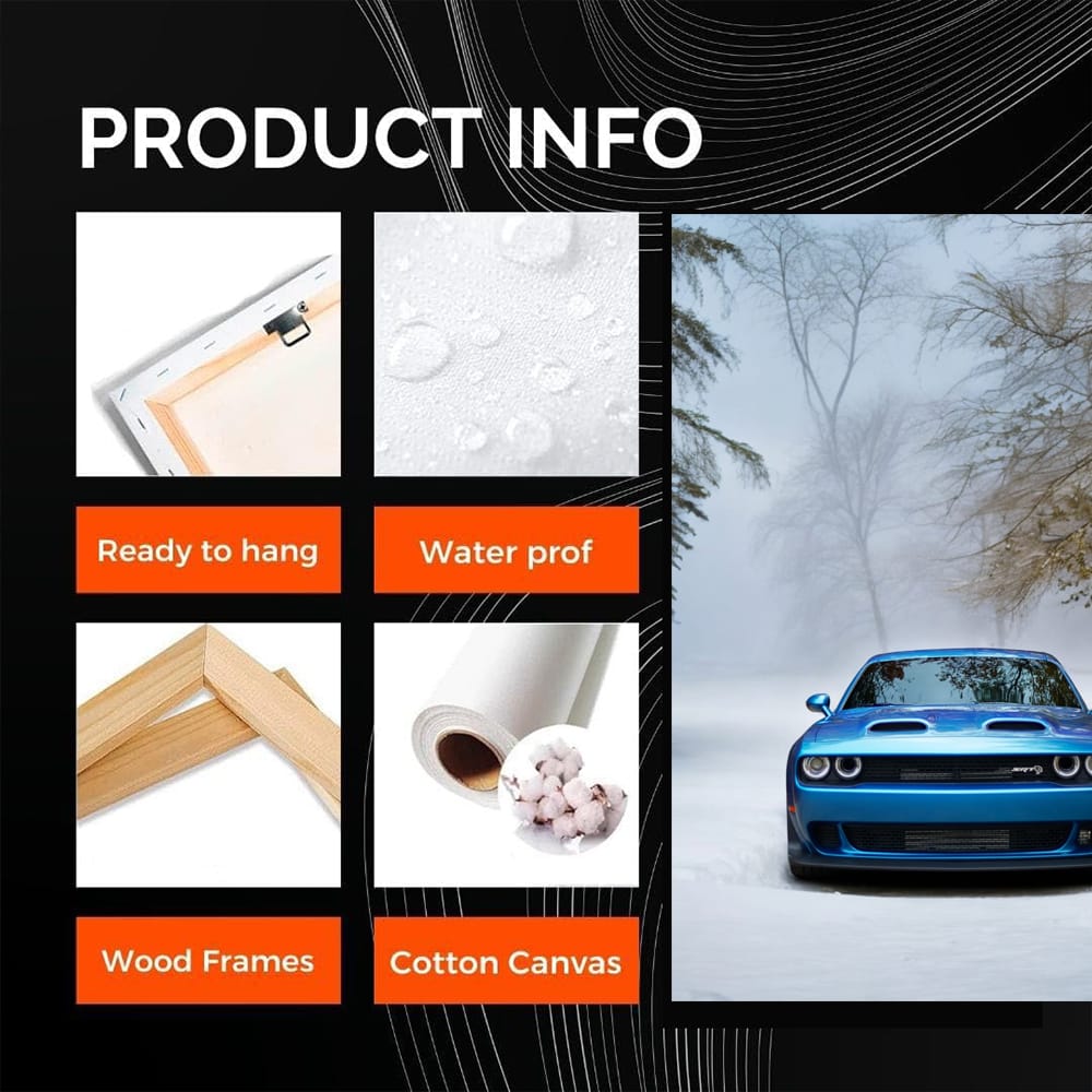 This poster is just the bomb! Dodge Challenger in the snow is a must-have for any car enthusiast. The painting is so cool that even the walls start roaring like a V8. Wall art for those who appreciate power and style. See more from the collection: Dodge Art